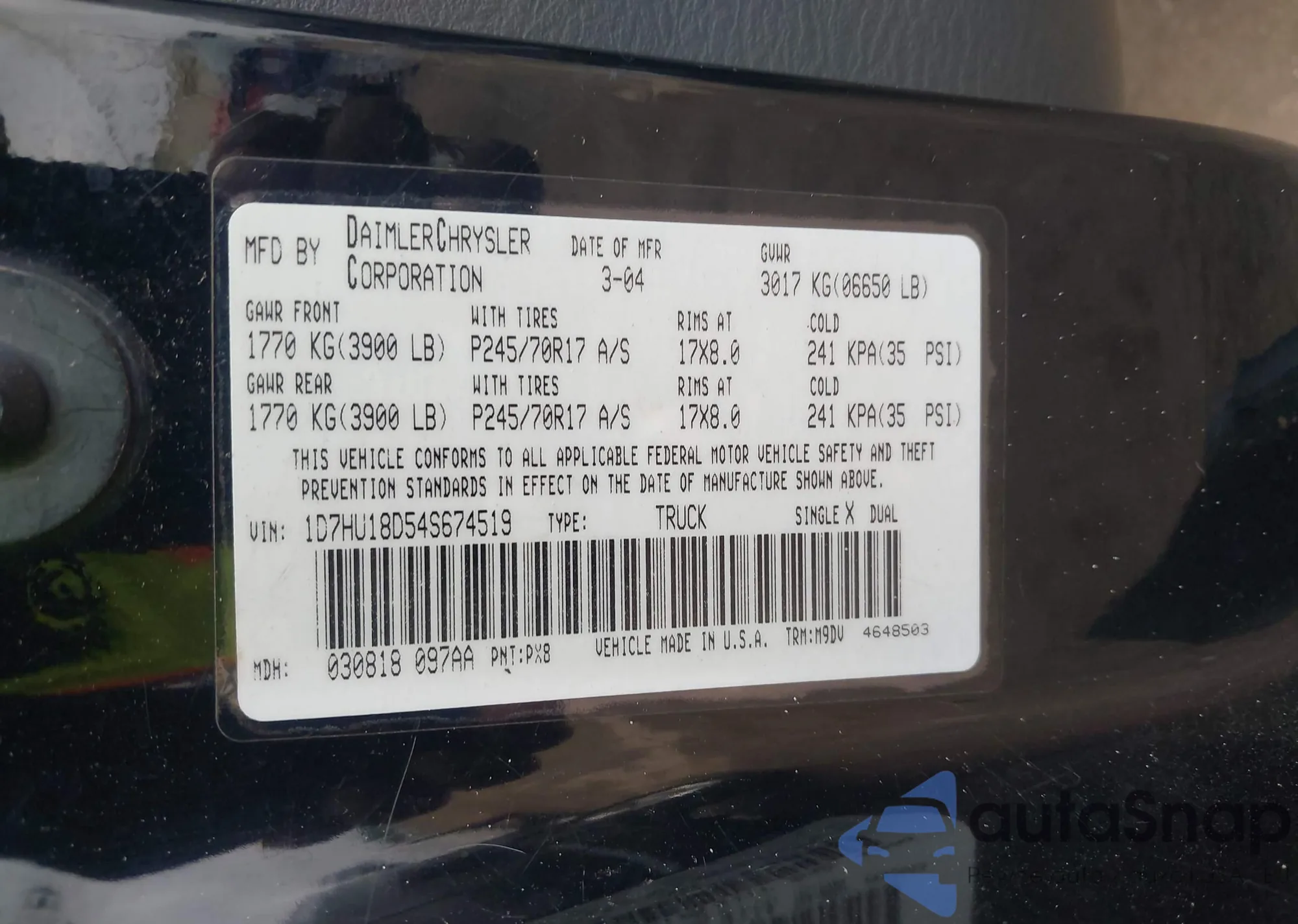 • VIN 1D7HU18D54S674519