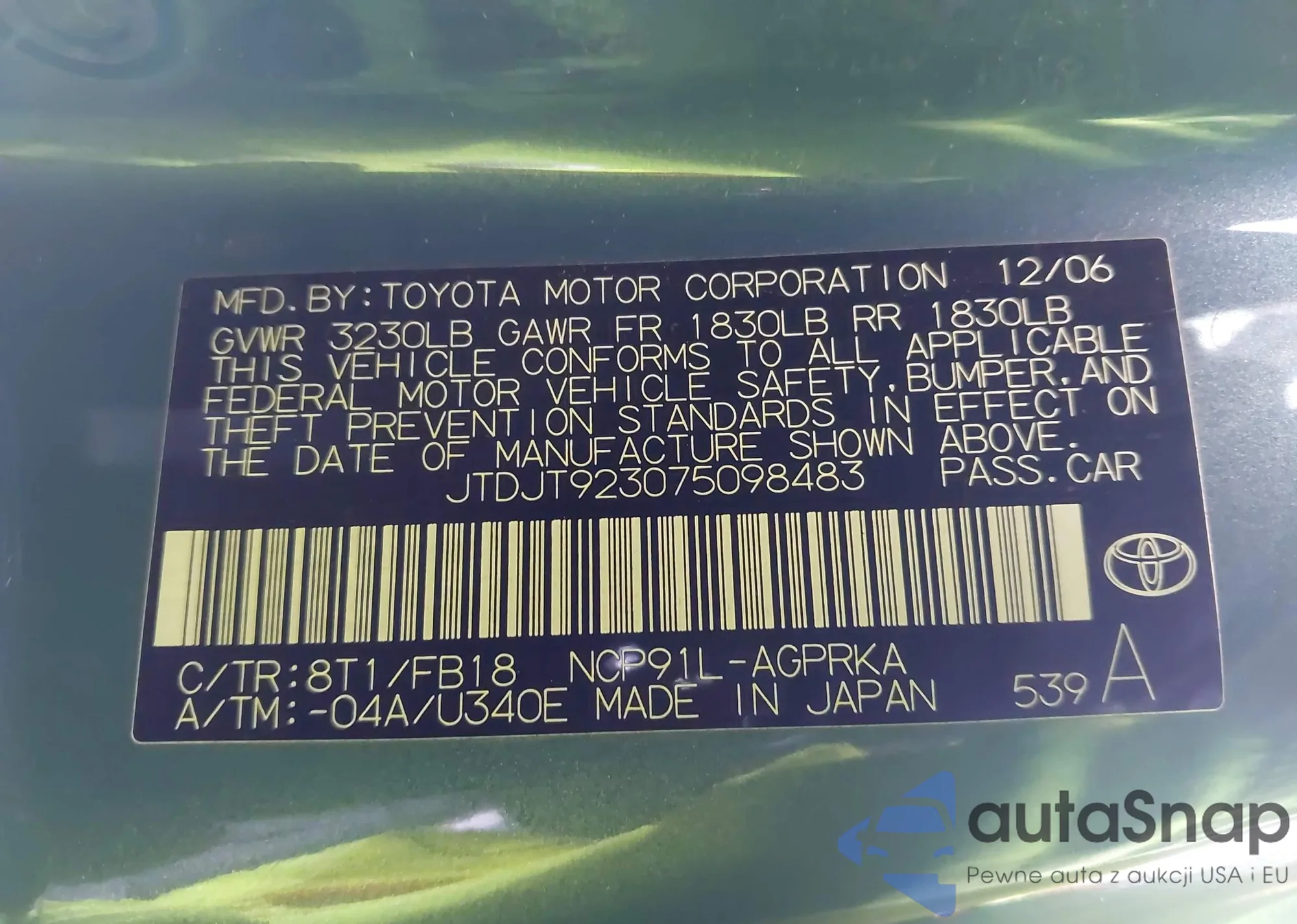 LOT: 43693622 VIN: JTDJT923075098483