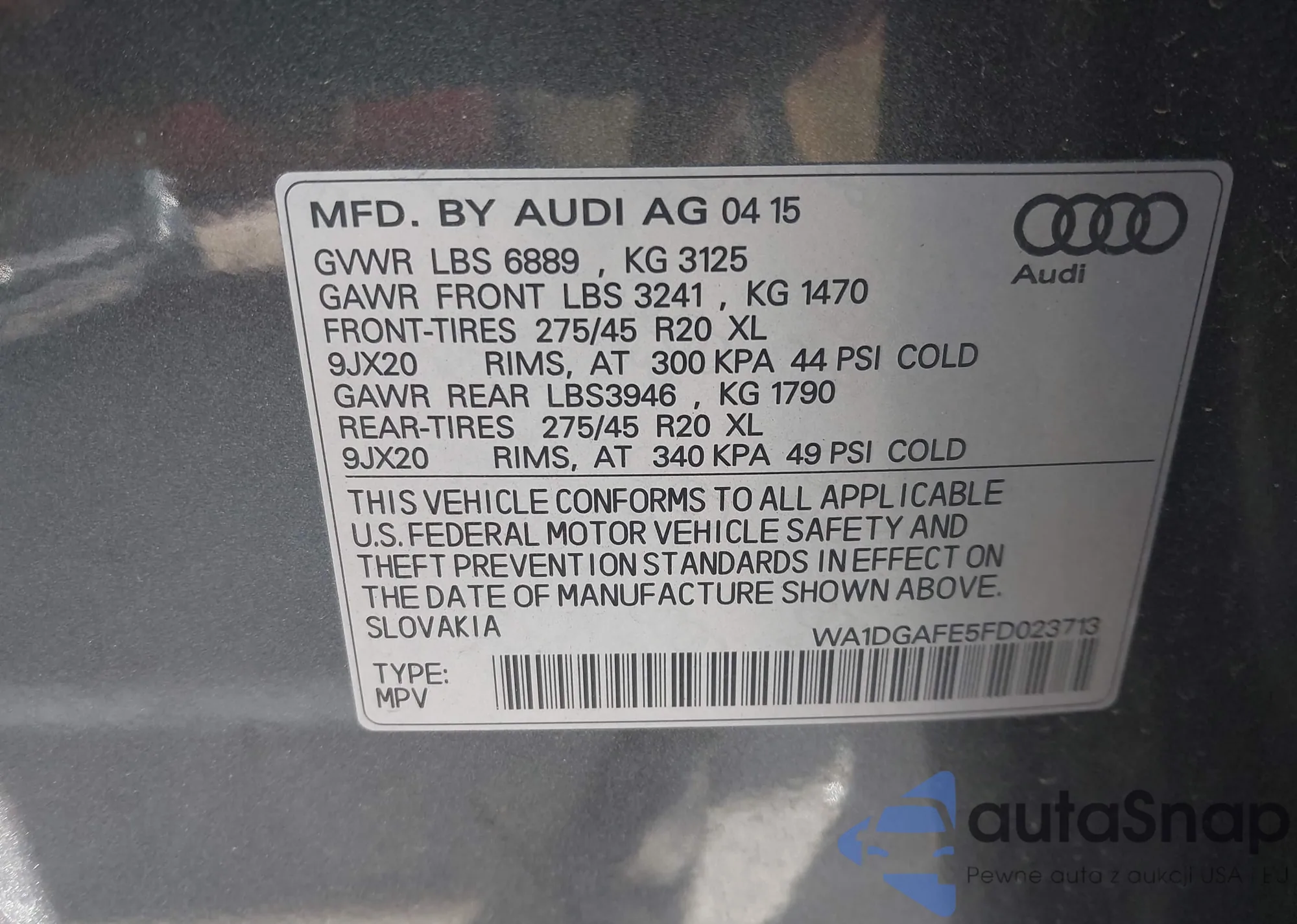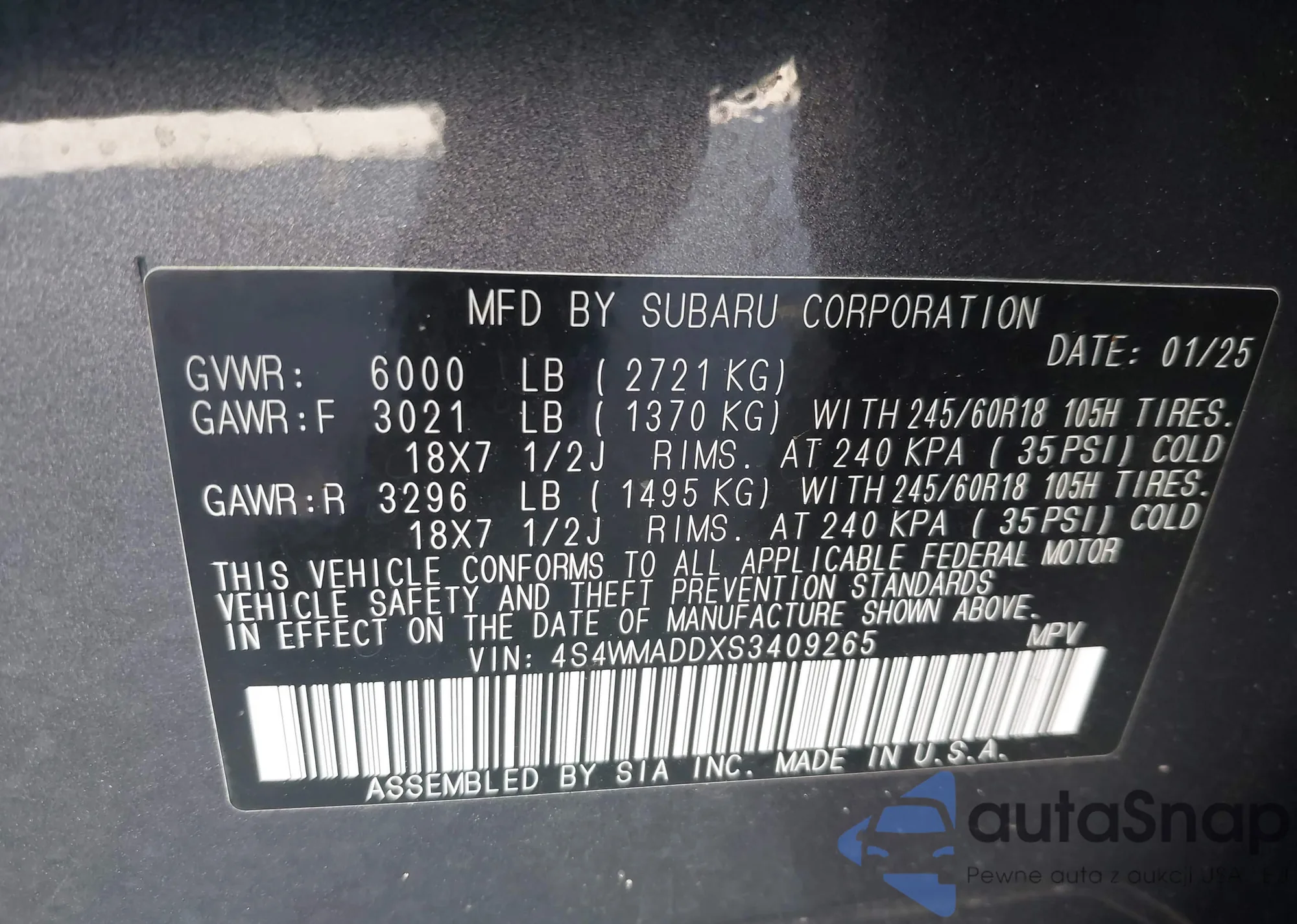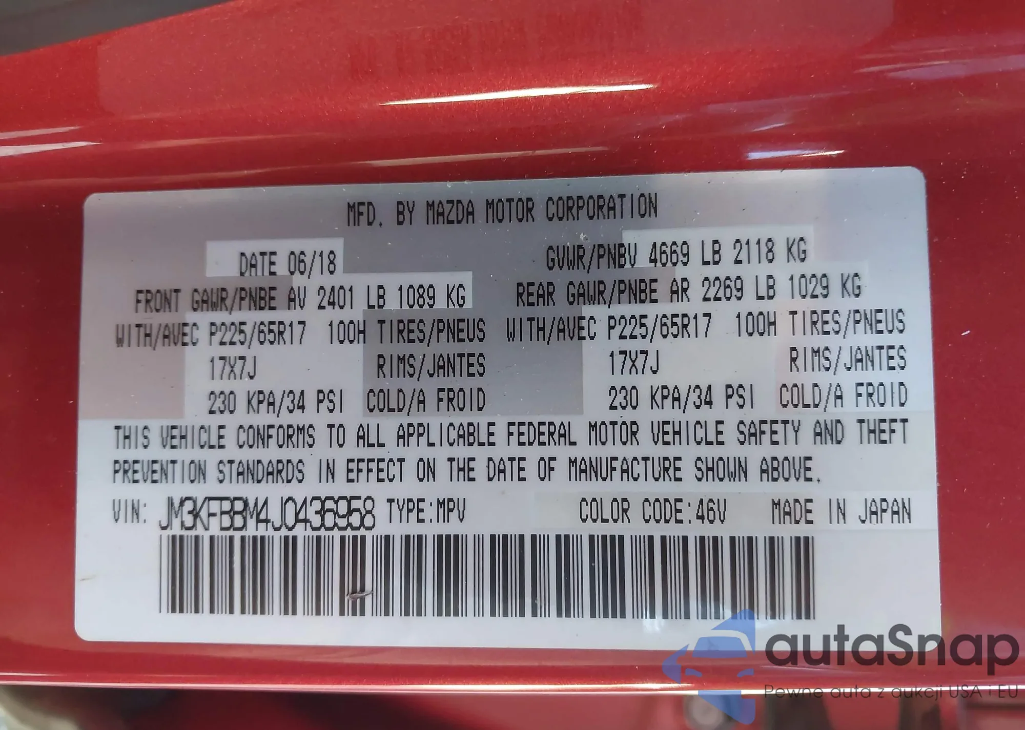 LOT: 43750349 VIN: JM3KFBBM4J0436958