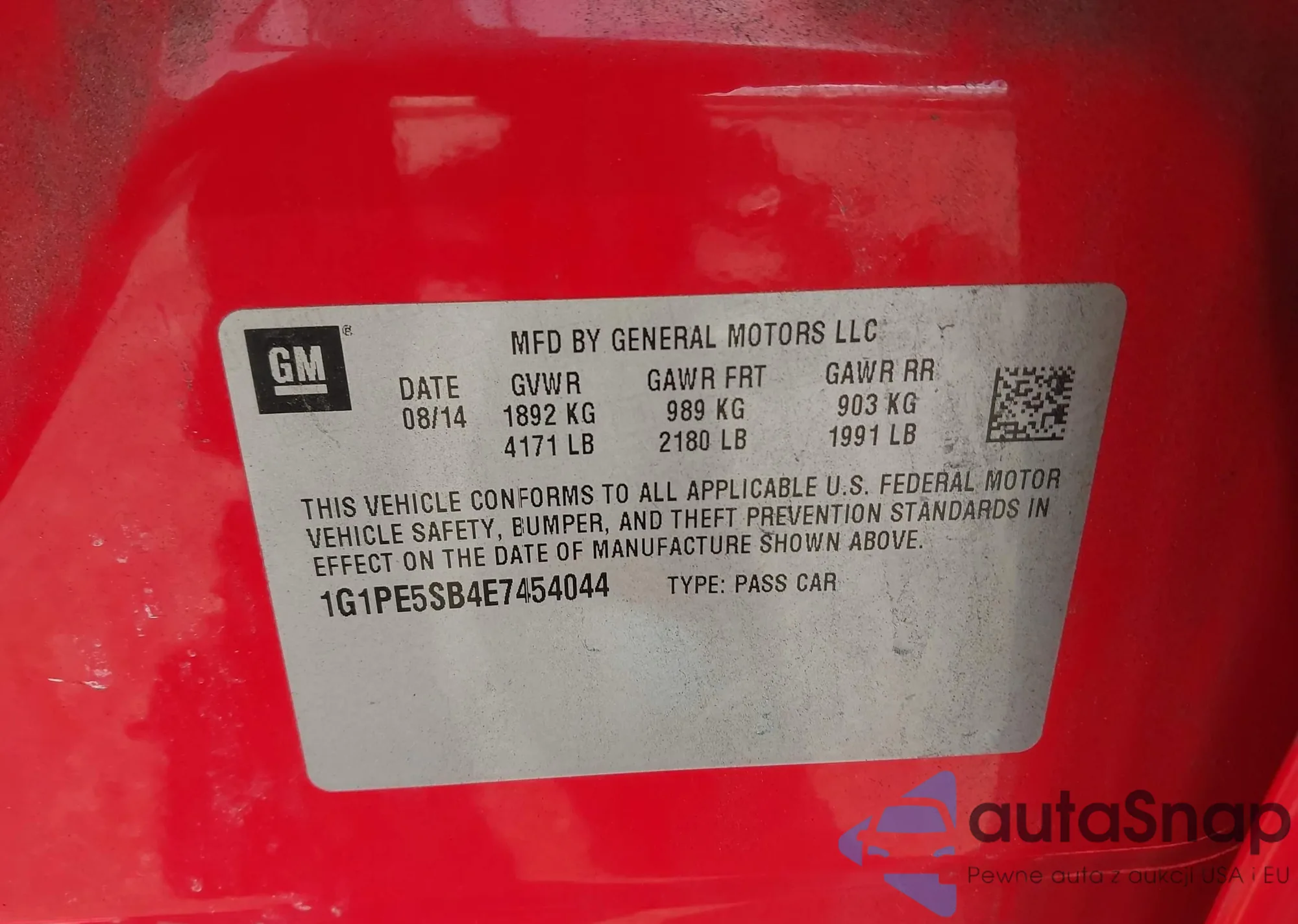 LOT: 43722929 VIN: 1G1PE5SB4E7454044