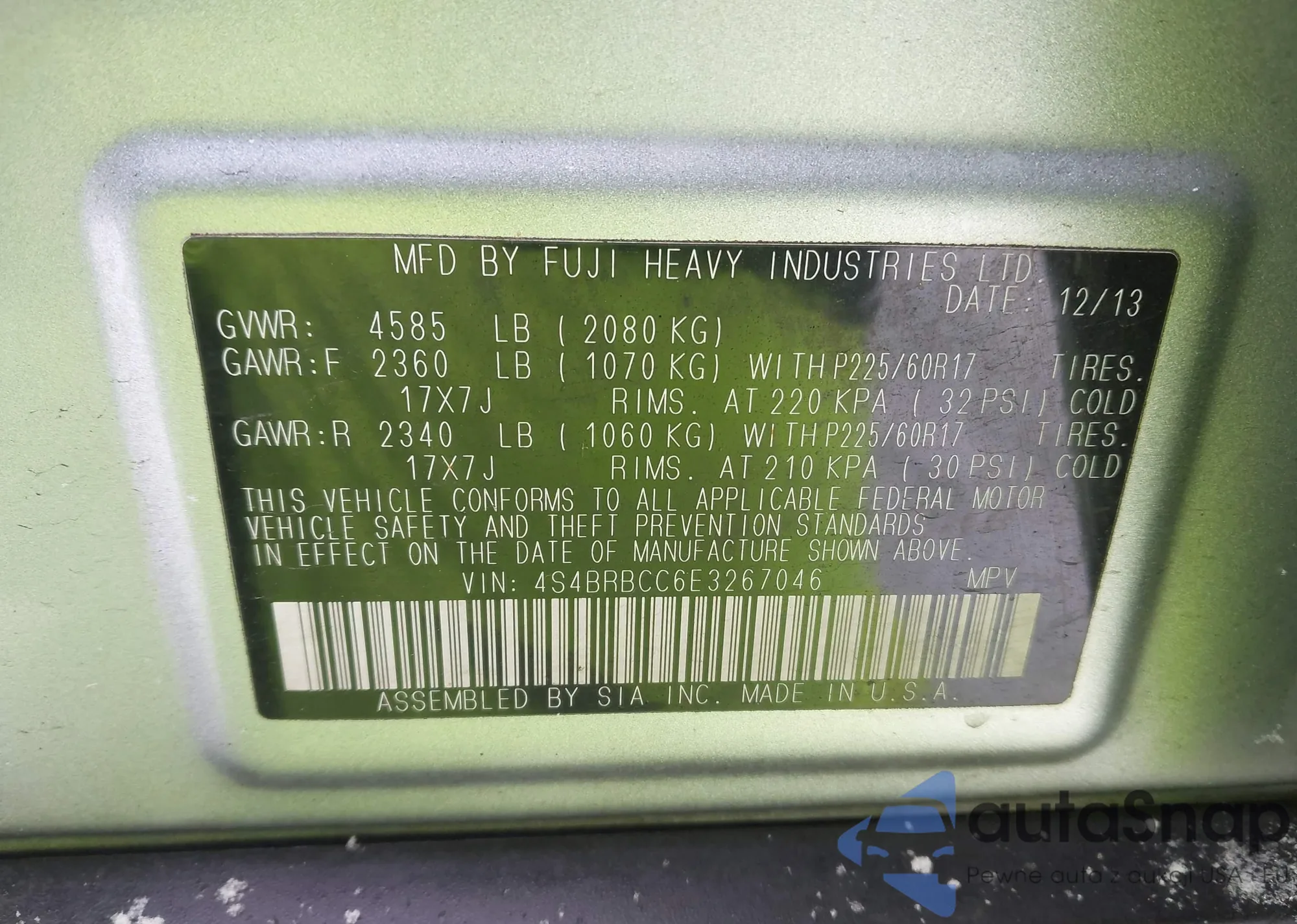 • VIN 4S4BRBCC6E3267046