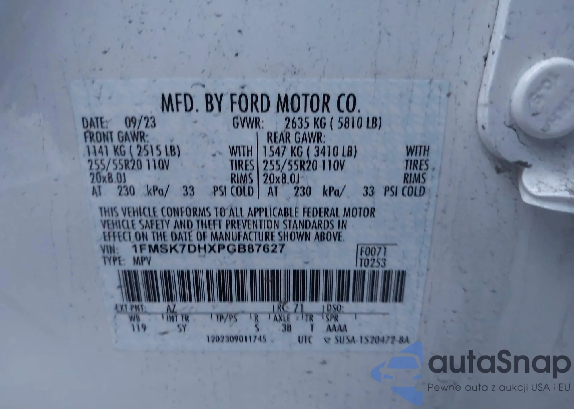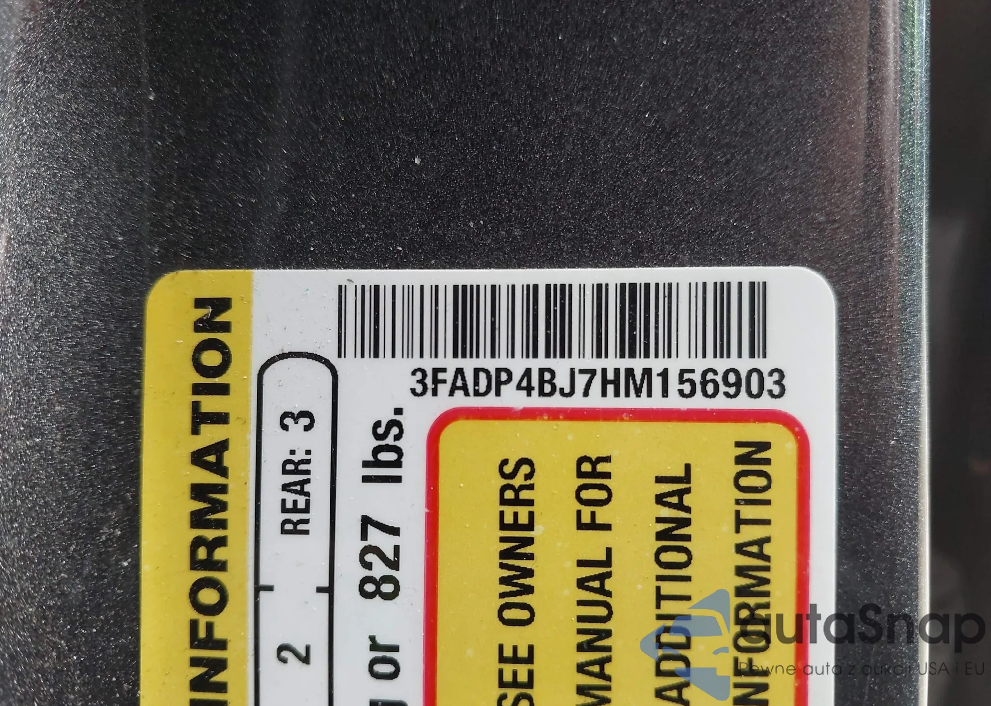 • VIN 3FADP4BJ7HM156903