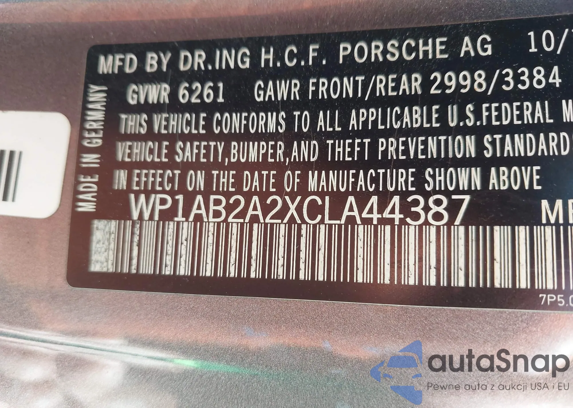 LOT: 43448004 VIN: WP1AB2A2XCLA44387