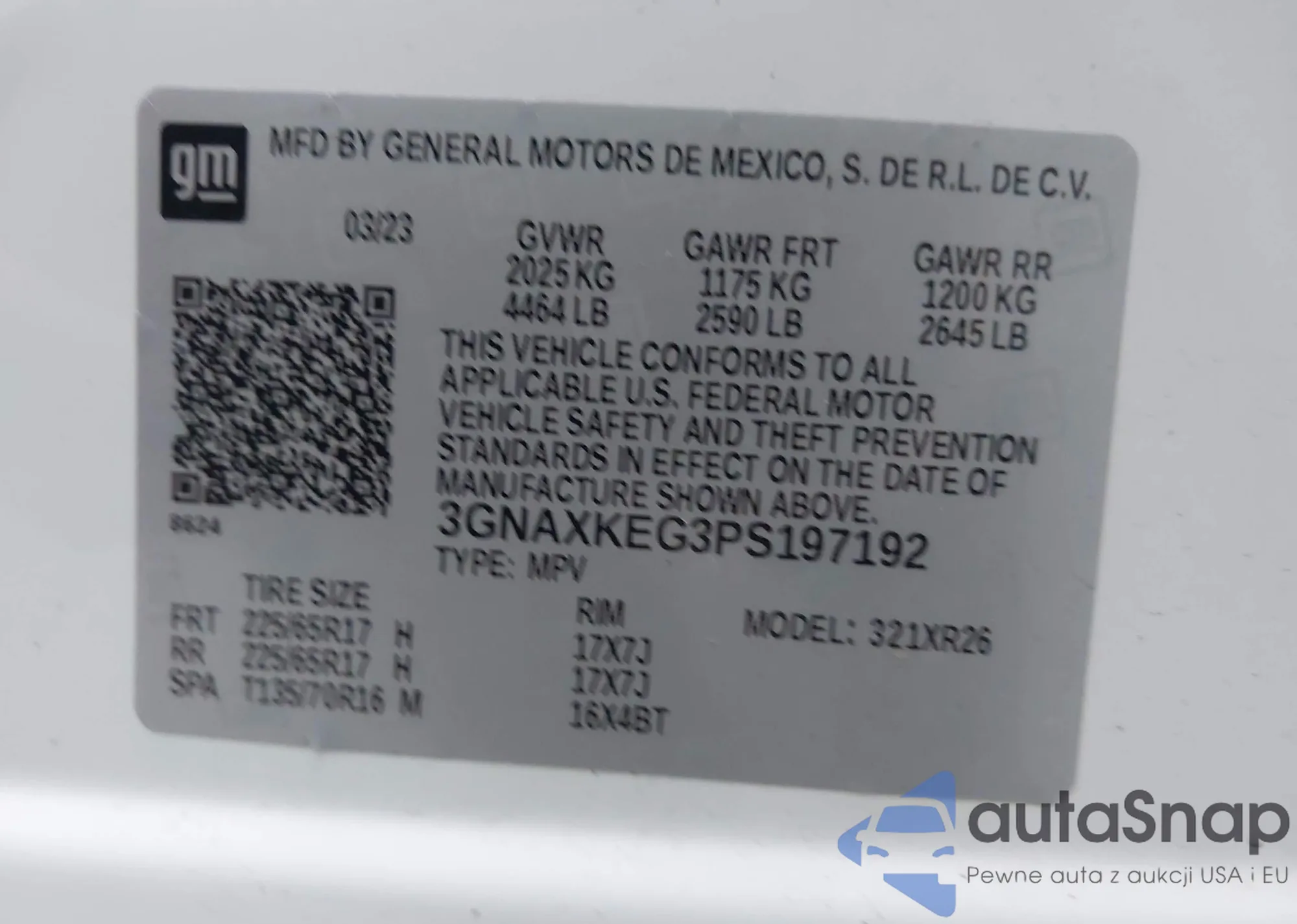LOT: 43735680 VIN: 2GKFLVEK4H6259400