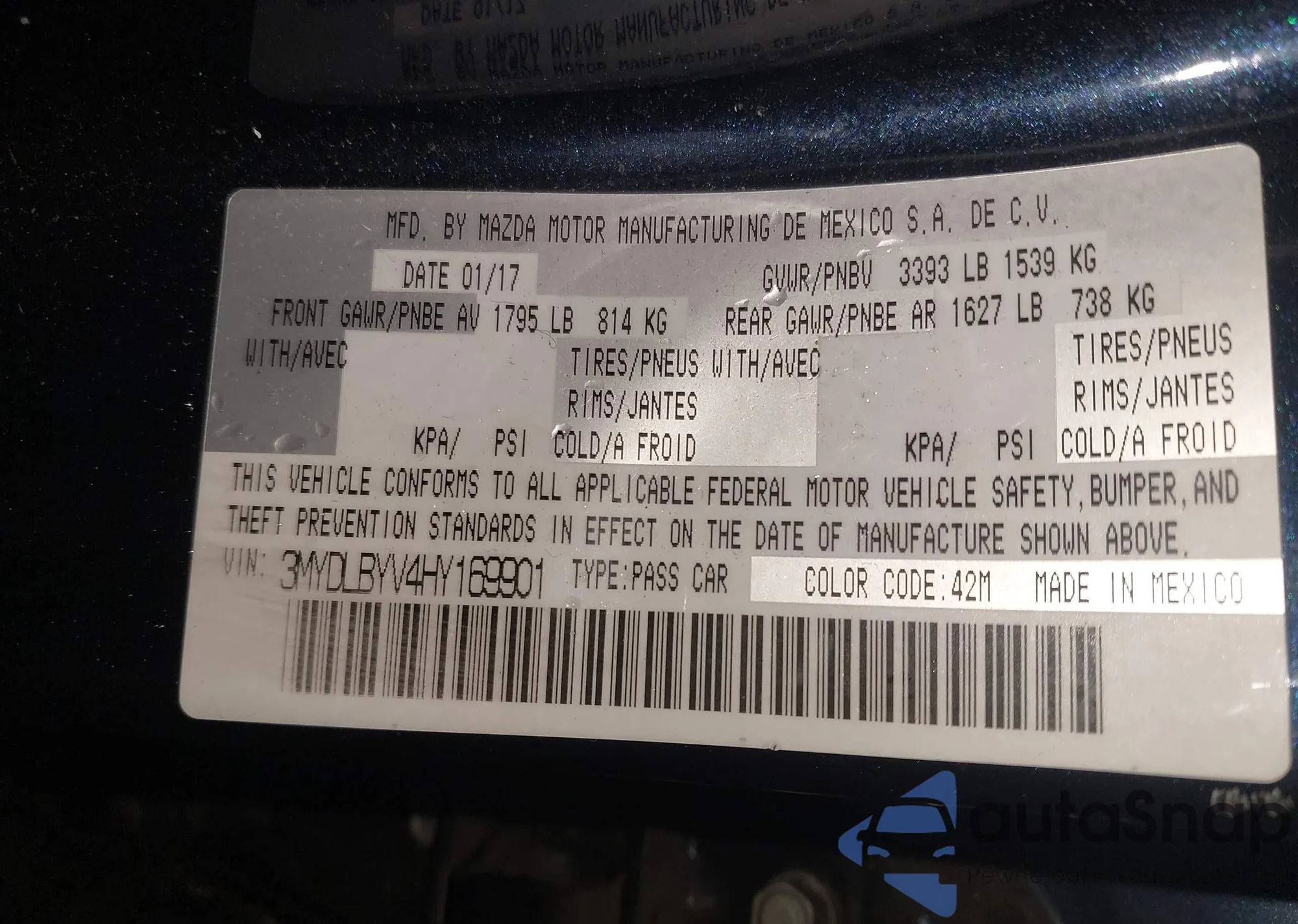 LOT: 43605665 VIN: 3MYDLBYV4HY169901