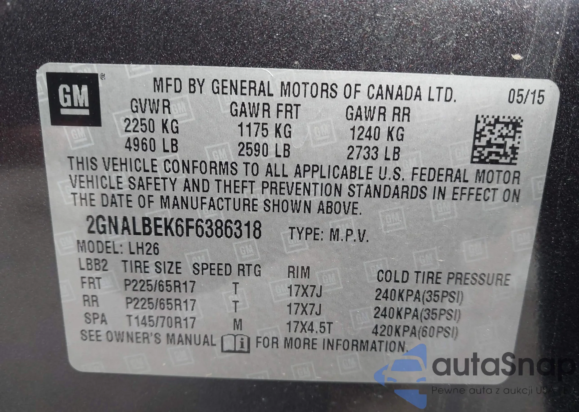 • VIN 2GNALBEK6F6386318