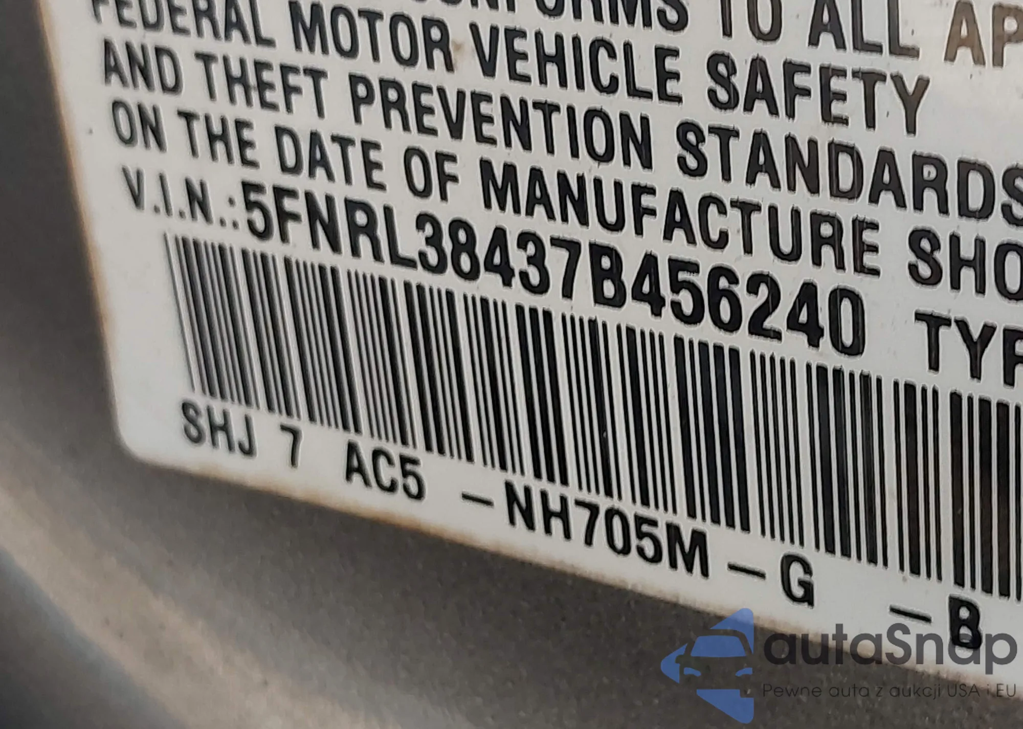 • VIN 5FNRL38437B456240