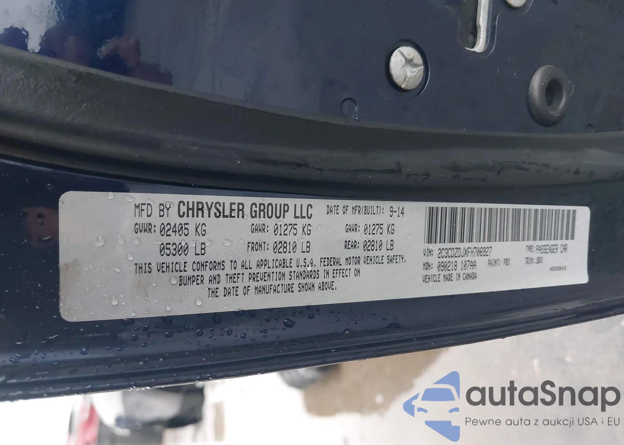 • VIN 2C3CDZDJXFH706927