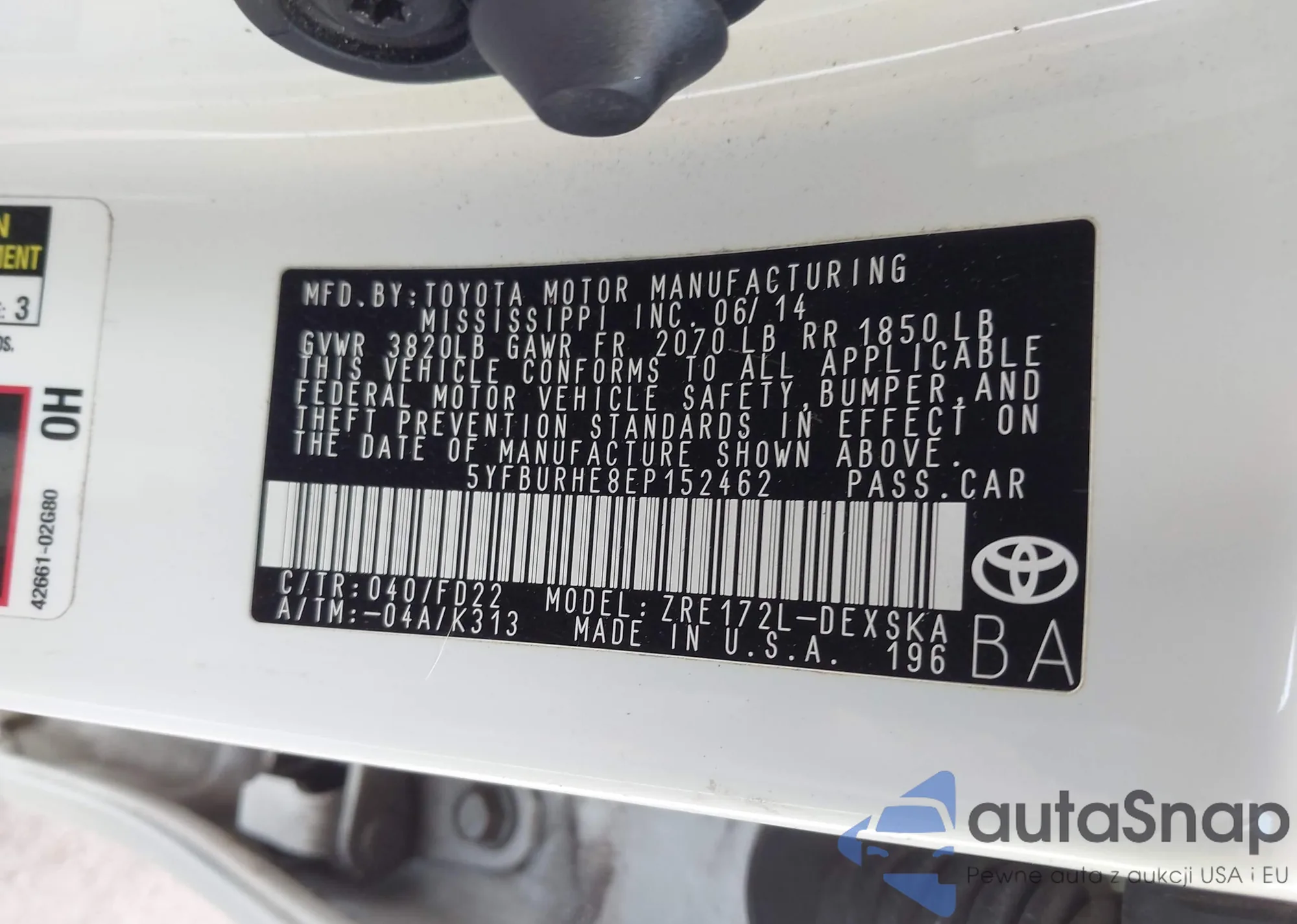 LOT: 43574611 VIN: 5YFBURHE8EP152462