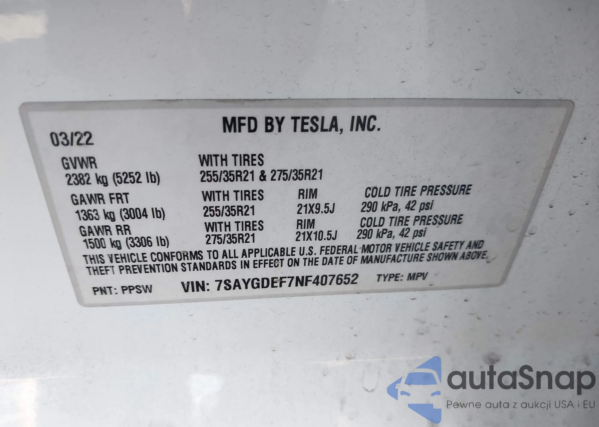 • VIN 7SAYGDEF7NF407652