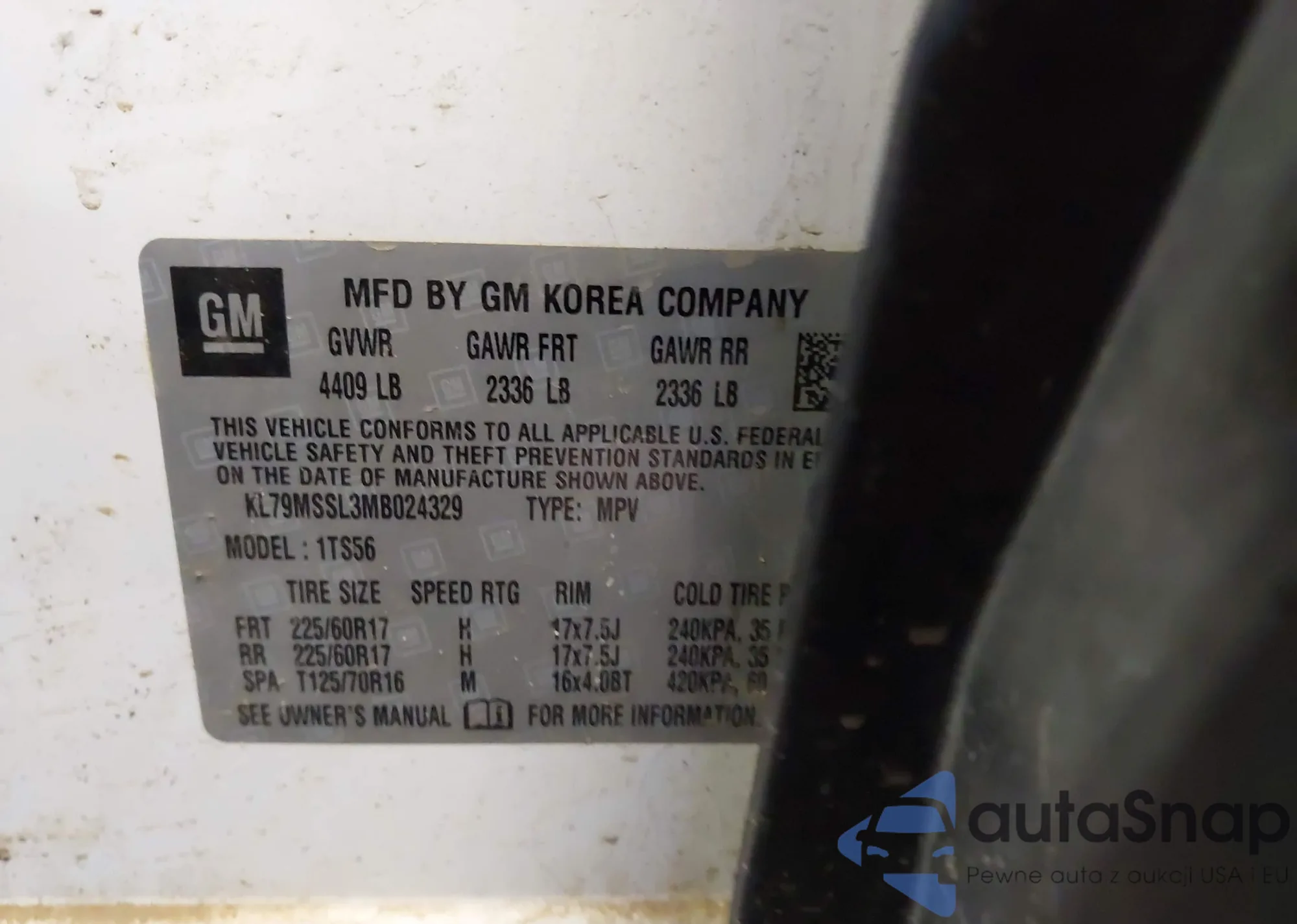 • VIN KL79MSSL3MB024329