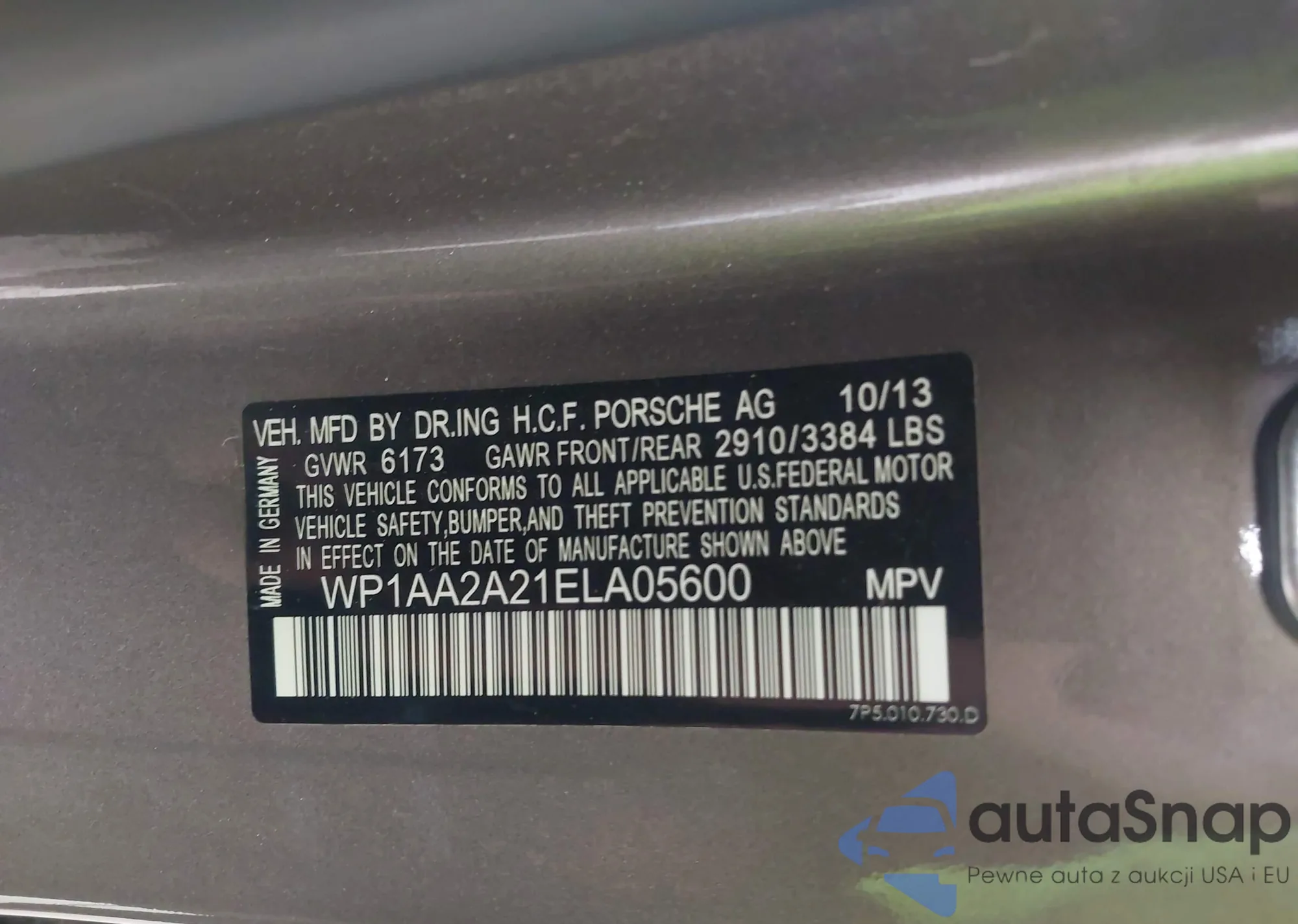 LOT: 43837953 VIN: WP1AA2A21ELA05600