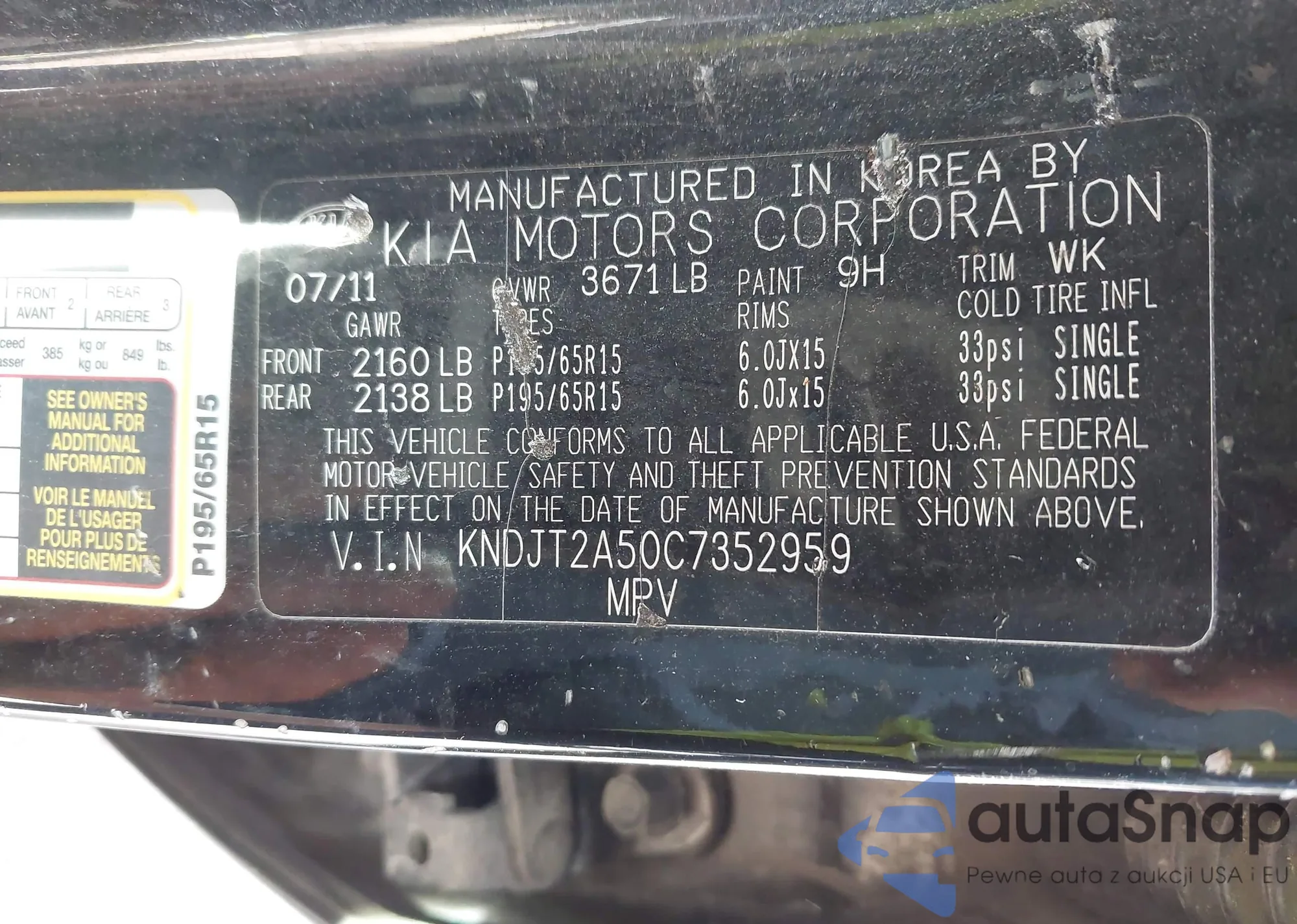 • VIN KNDJT2A50C7352959