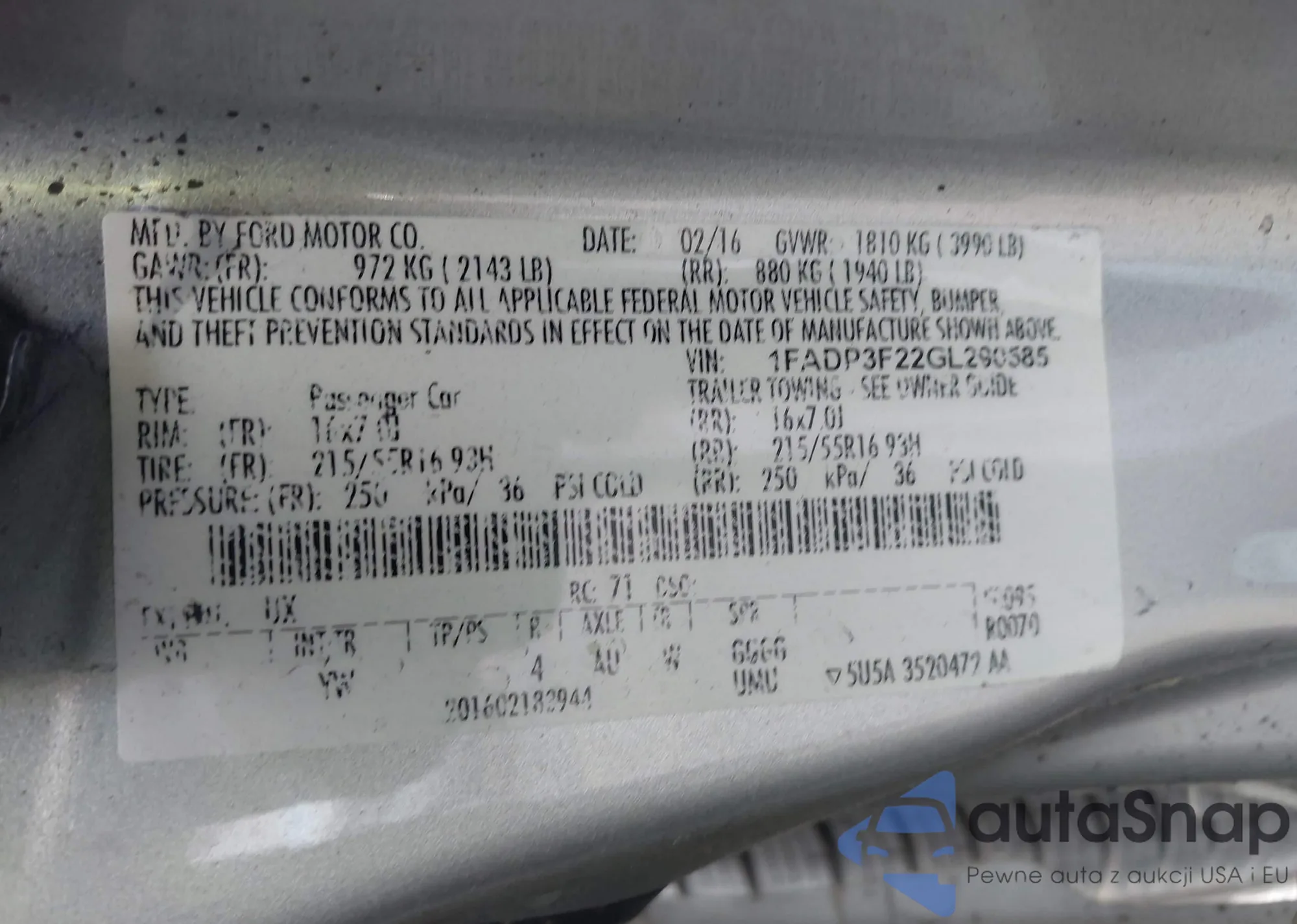 LOT: 43723788 VIN: 1FAHP2EW2AG151802