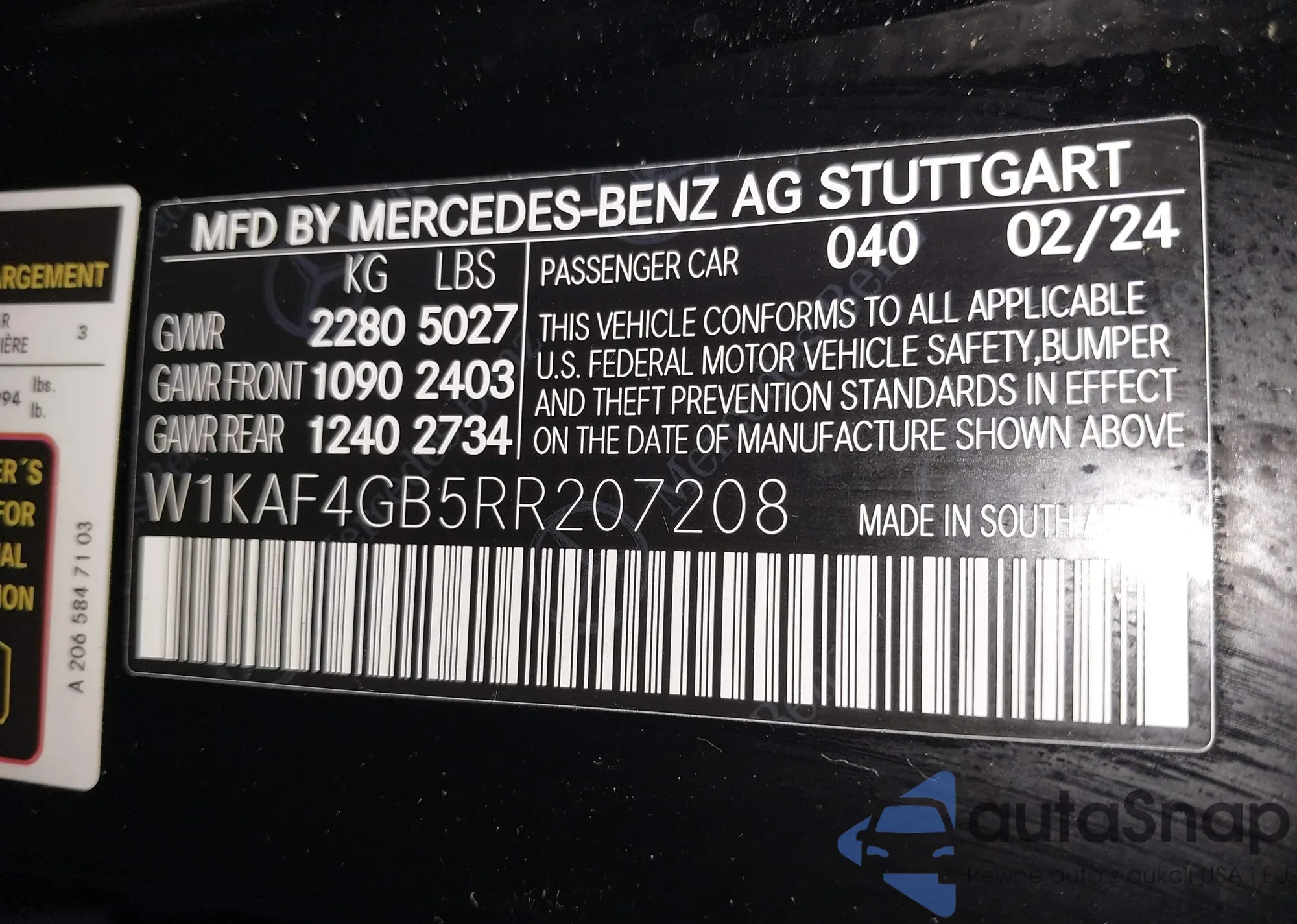 • VIN W1KAF4GB5RR207208