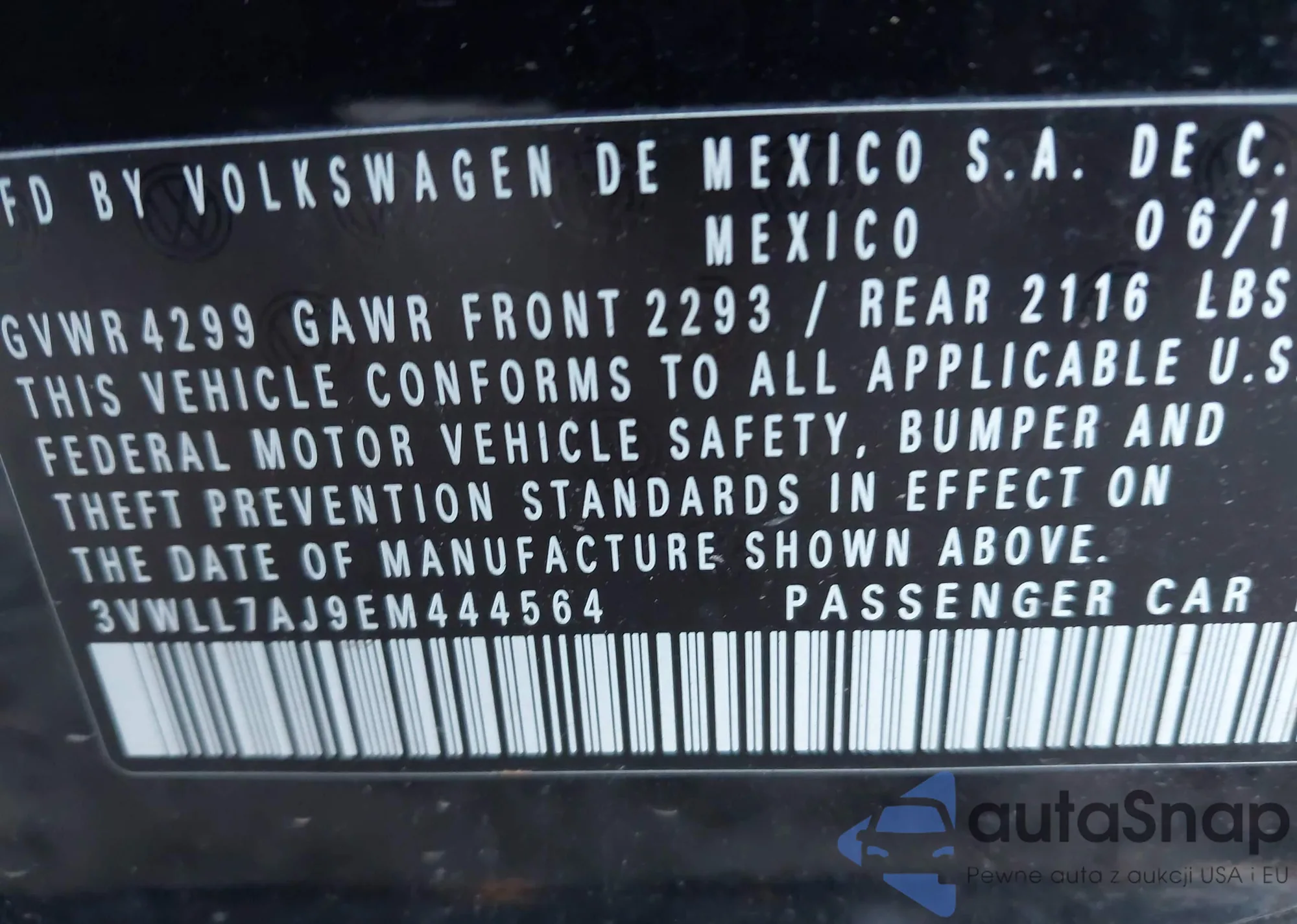 • VIN 3VWLL7AJ9EM444564