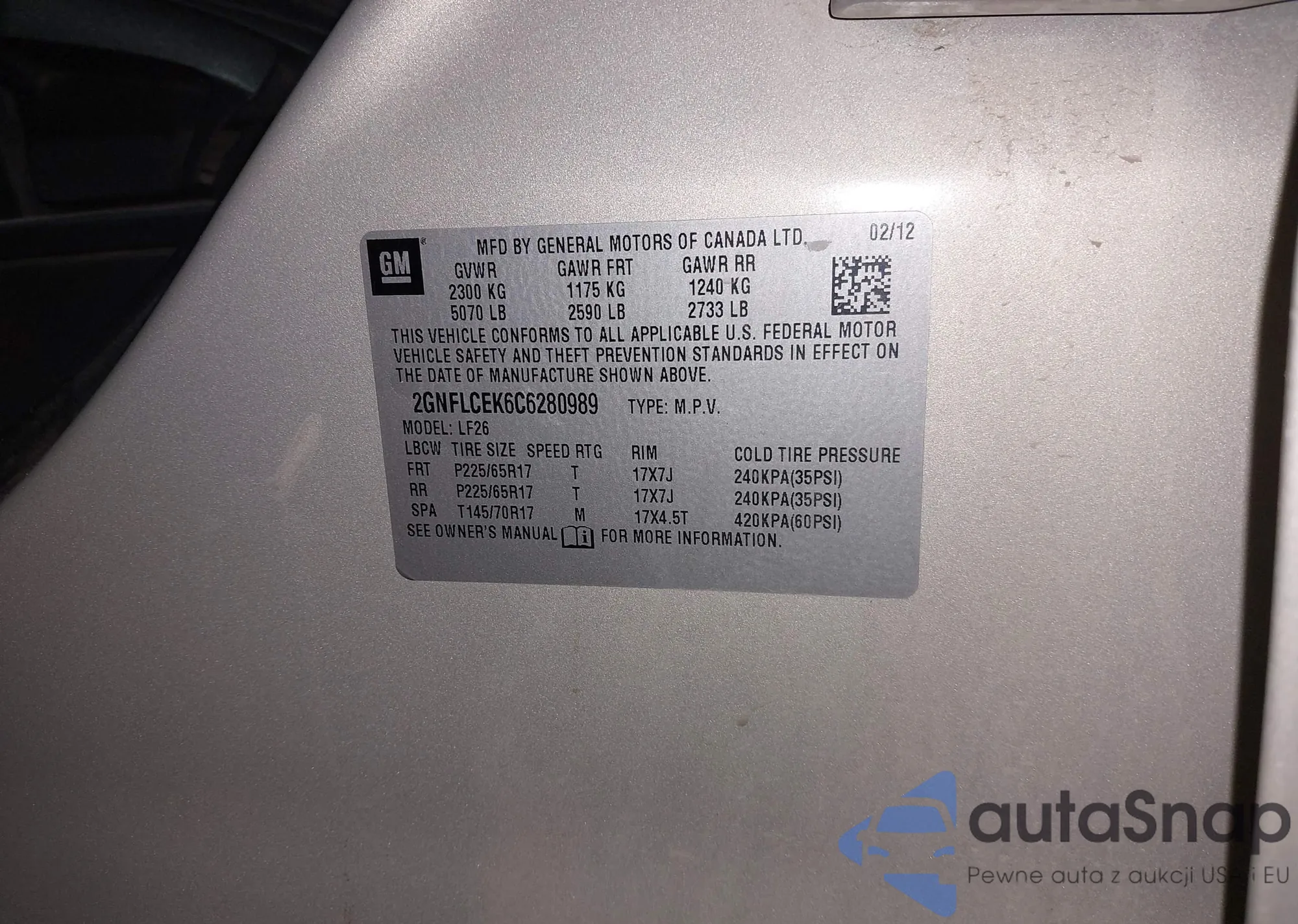 LOT: 43780947 VIN: KNAFU6A20A5148118