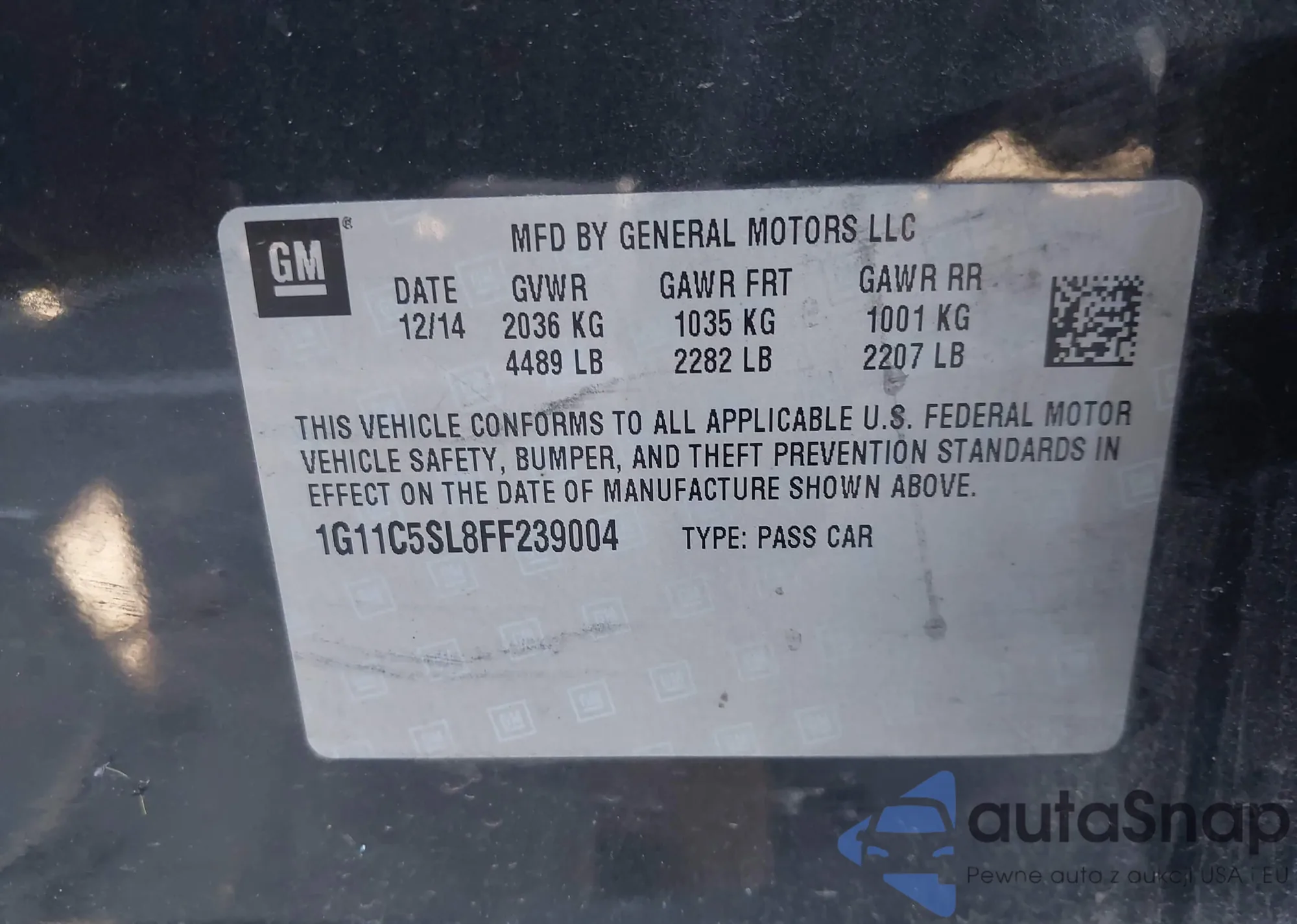 LOT: 43778038 VIN: 1G11C5SL8FF239004