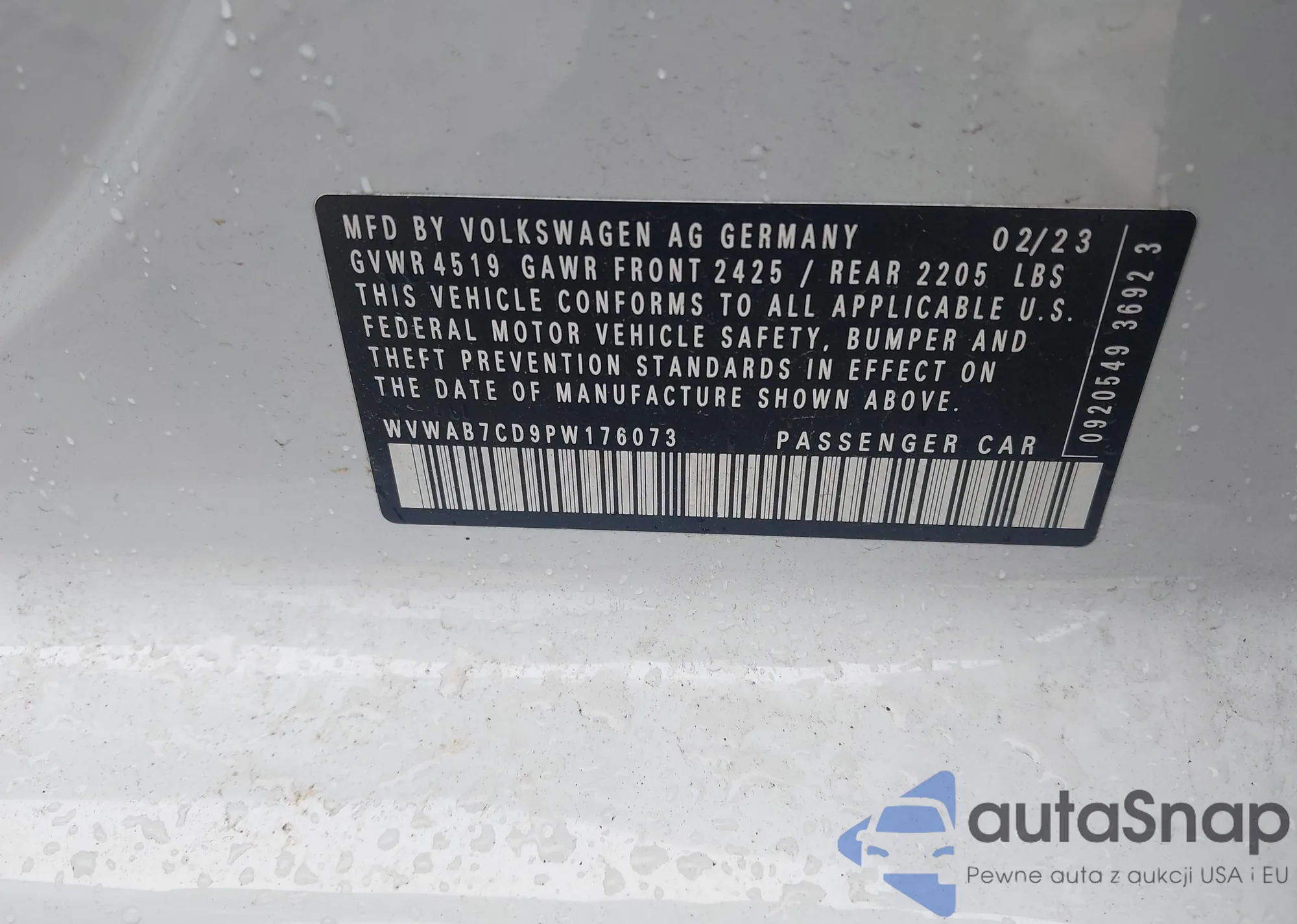 LOT: 43784711 VIN: WVWAB7CD9PW176073