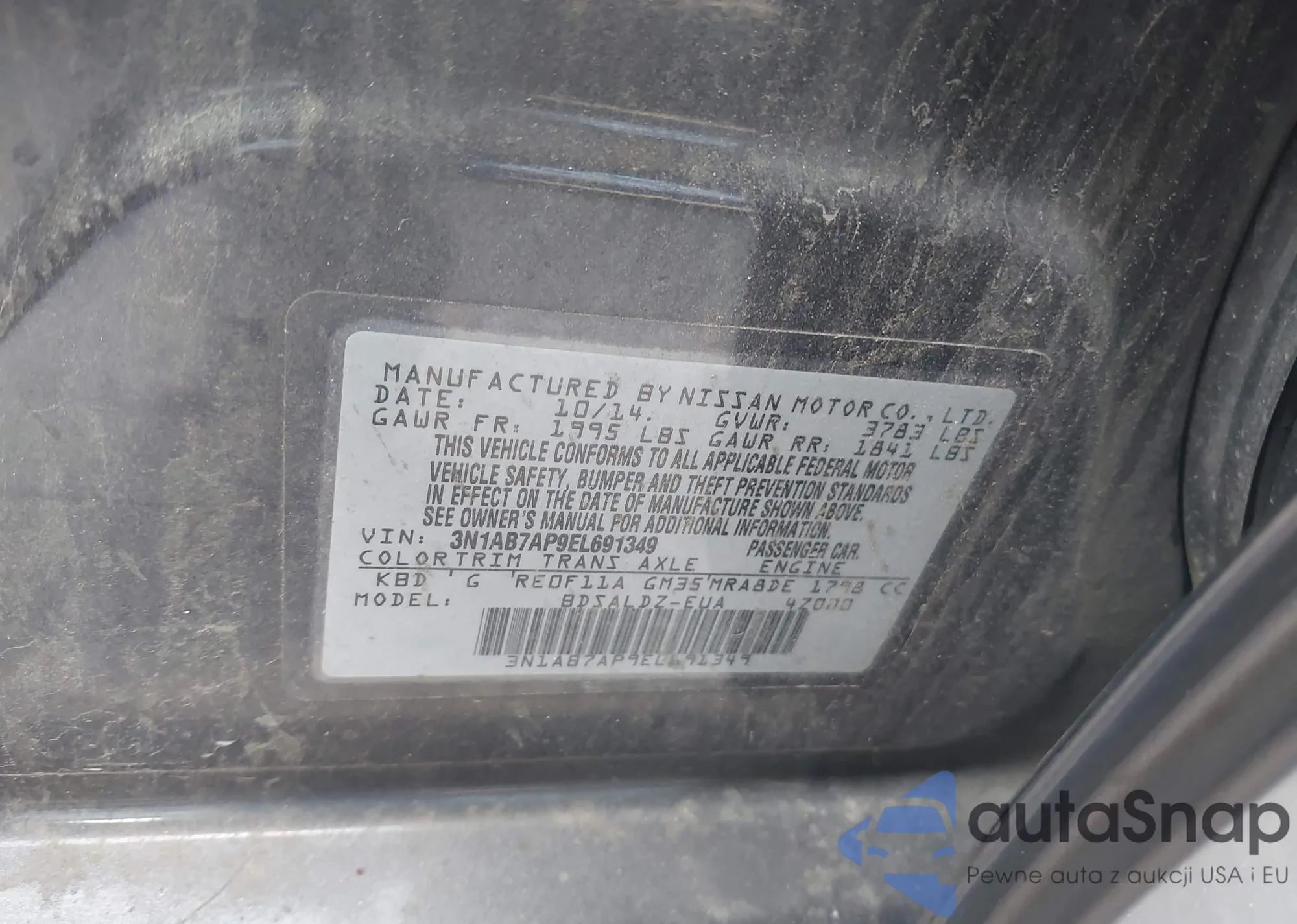 LOT: 43802988 VIN: 3N1AB7AP9EL691349