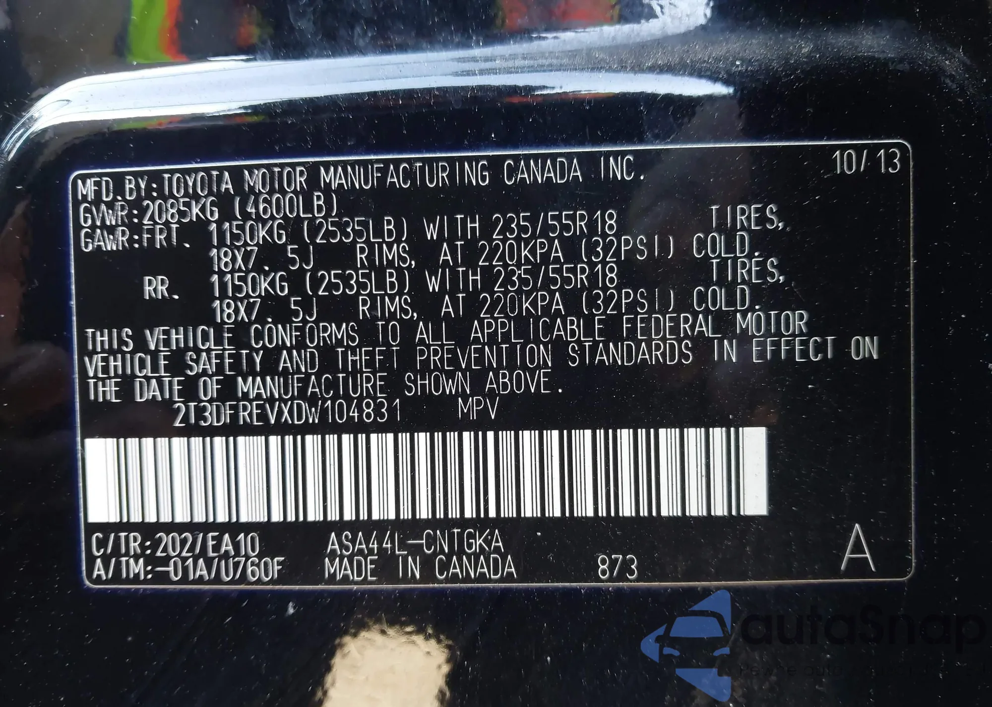 • VIN 2T3DFREVXDW104831