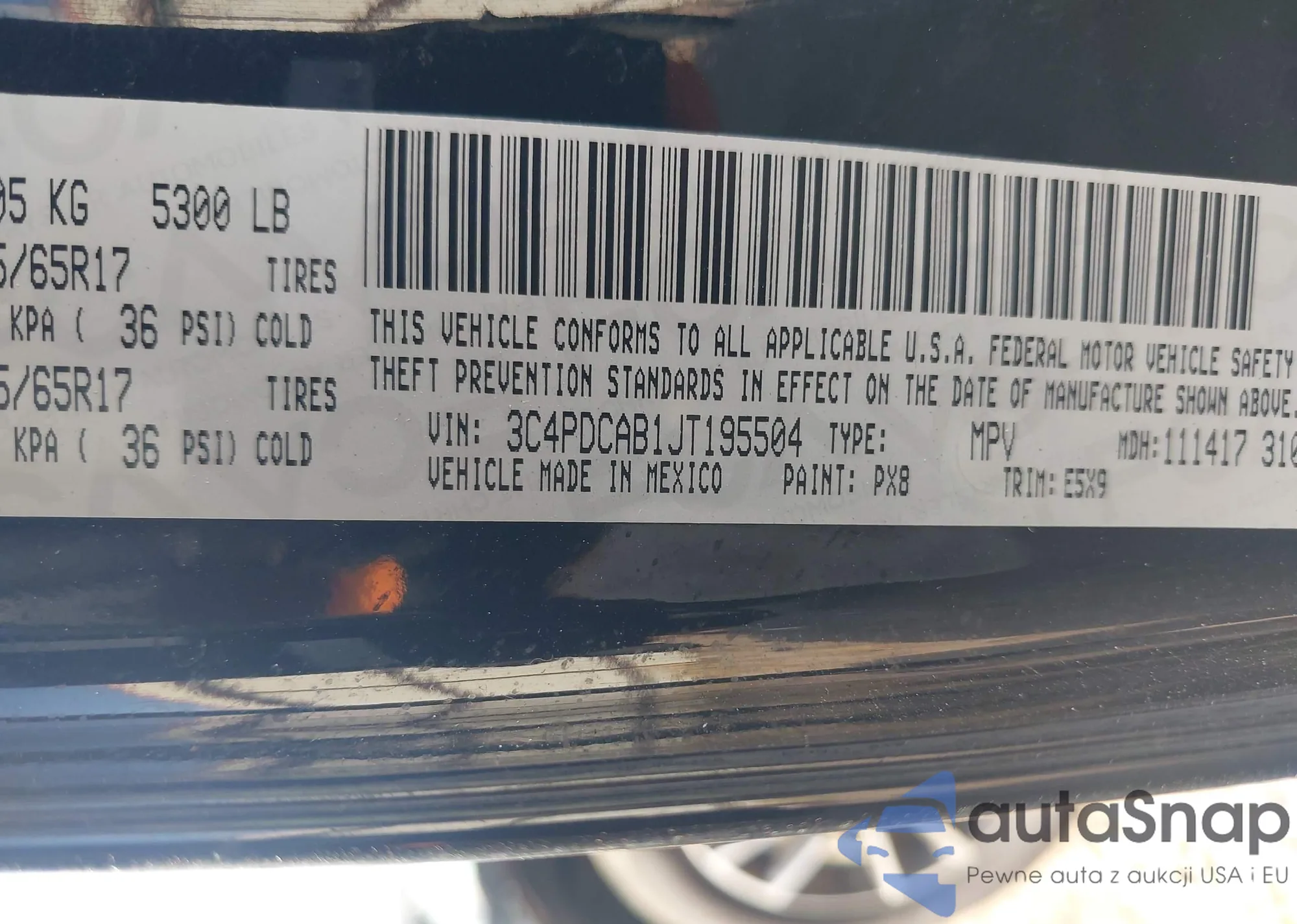 • VIN 3C4PDCAB1JT195504