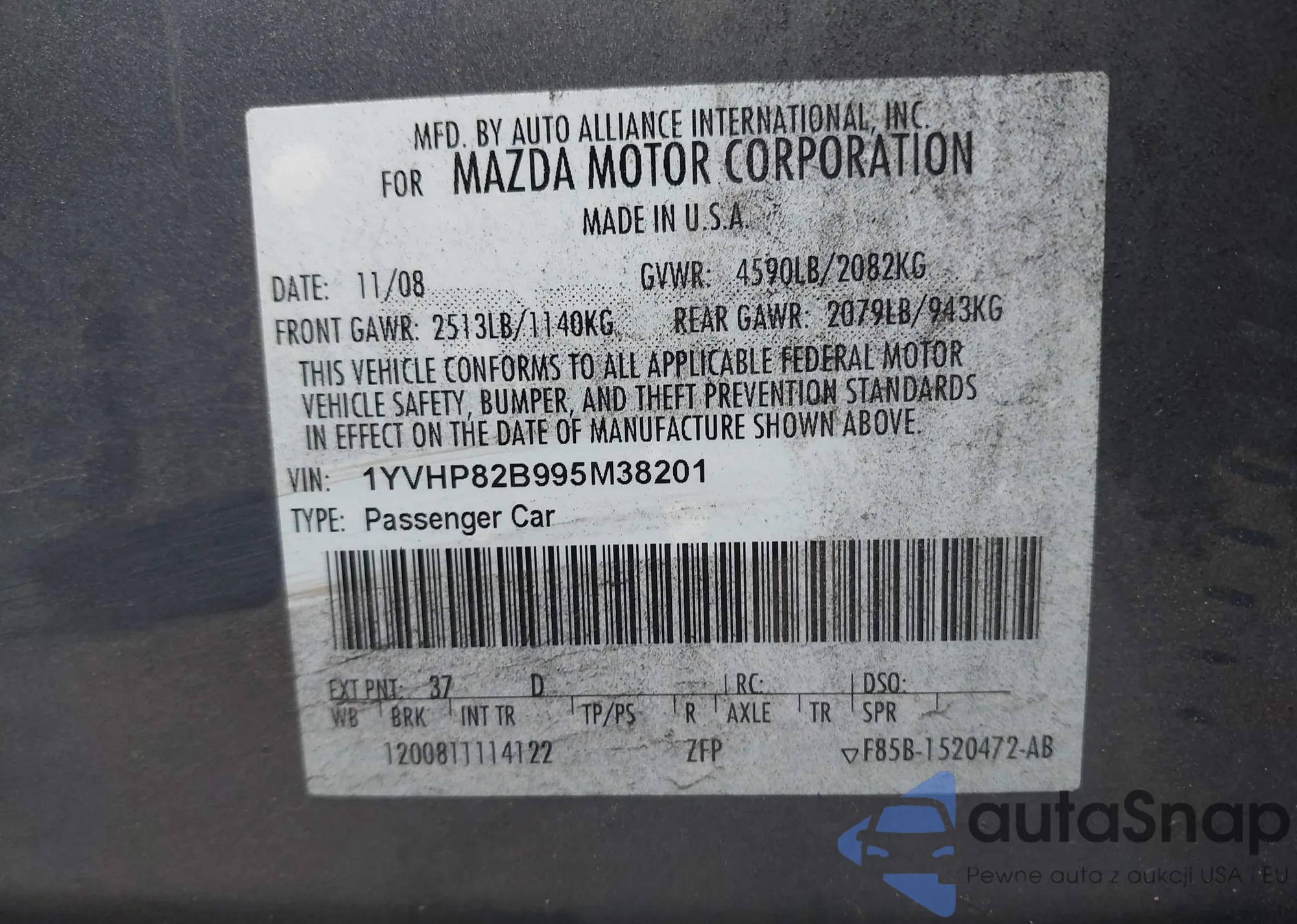 LOT: 43914926 VIN: 1YVHP82B995M38201
