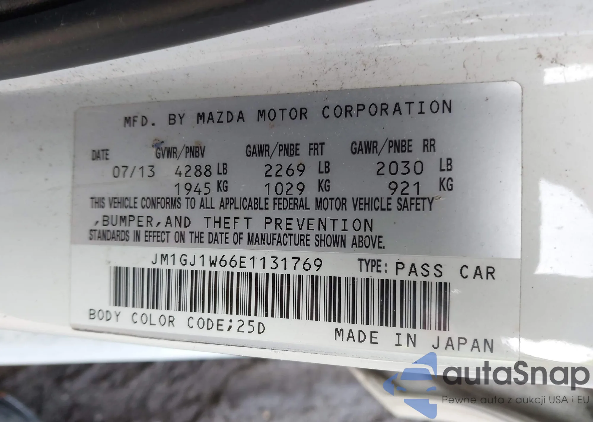 LOT: 43838254 VIN: JM1GJ1W66E1131769