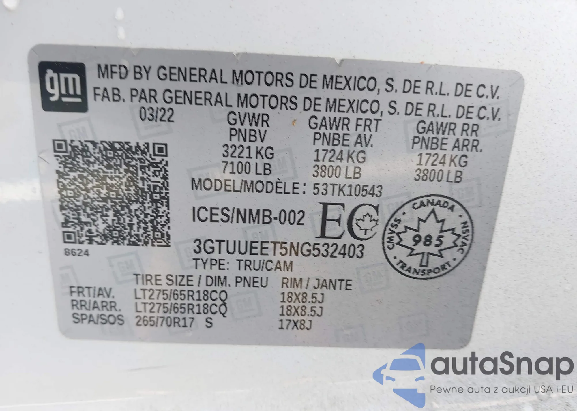 • VIN 3GTUUEET5NG532403