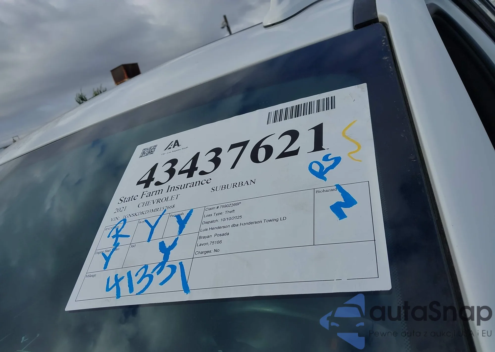 LOT: 43437621 VIN: 1GNSKDKD3MR157668
