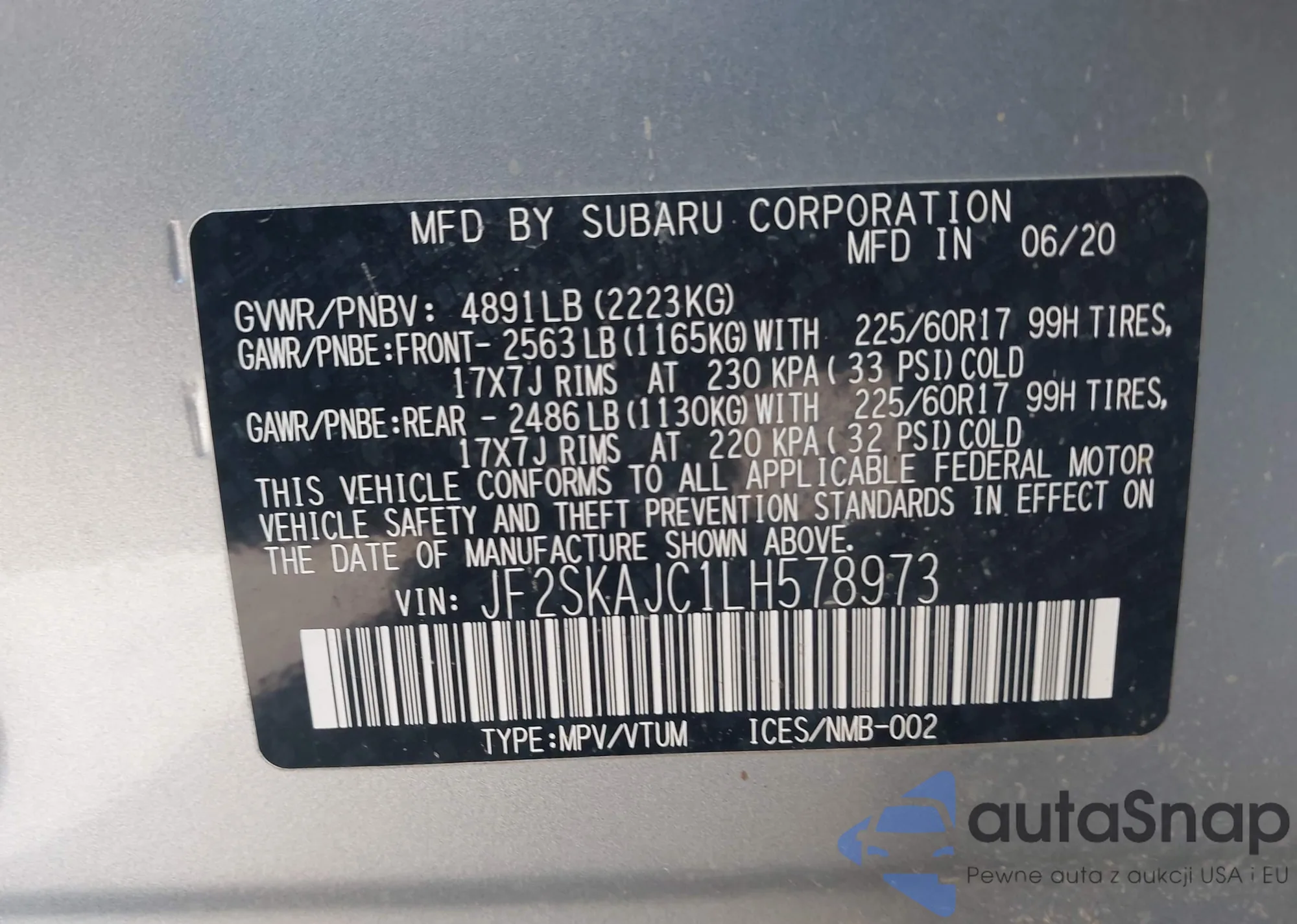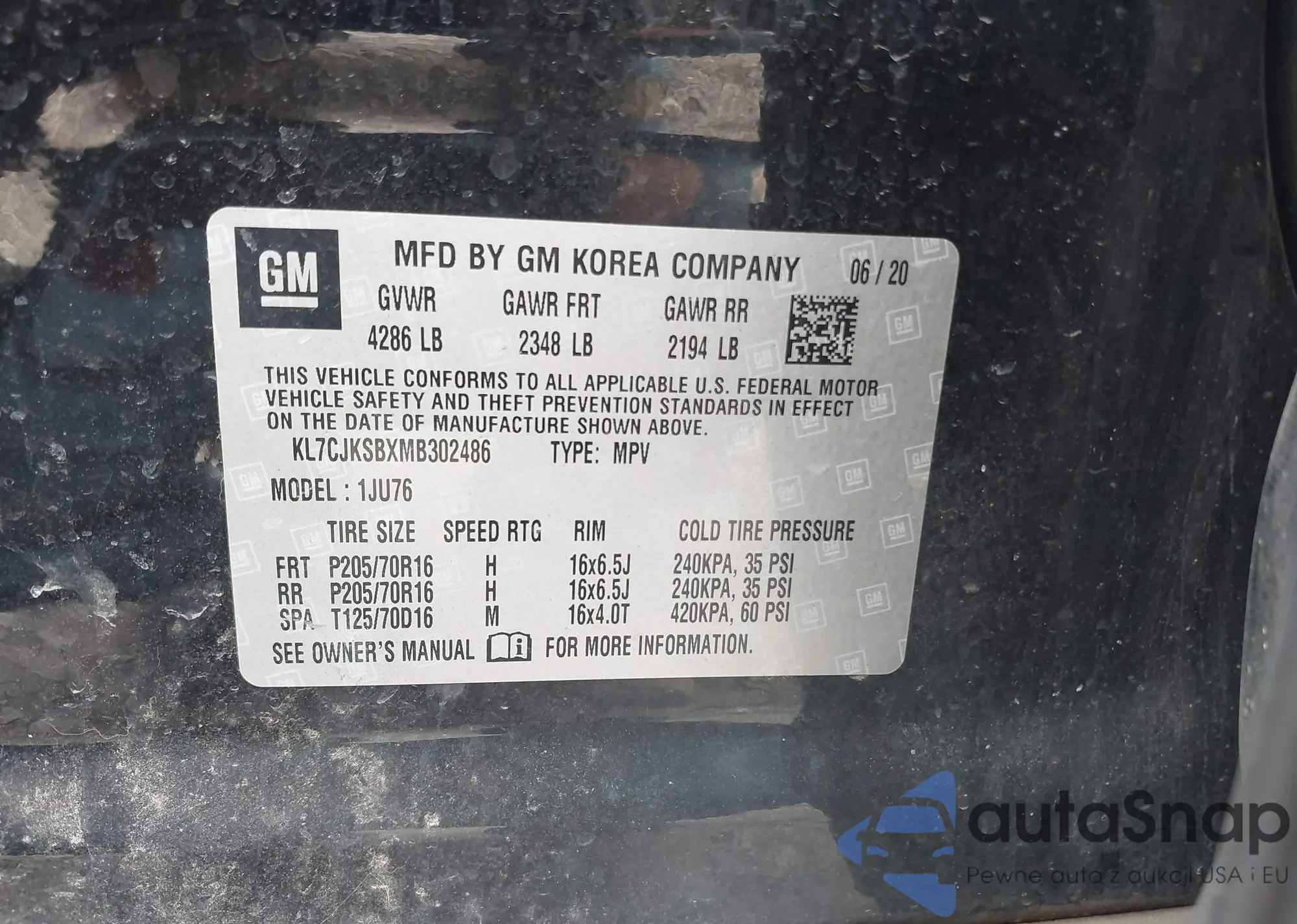 • VIN KL7CJKSBXMB302486