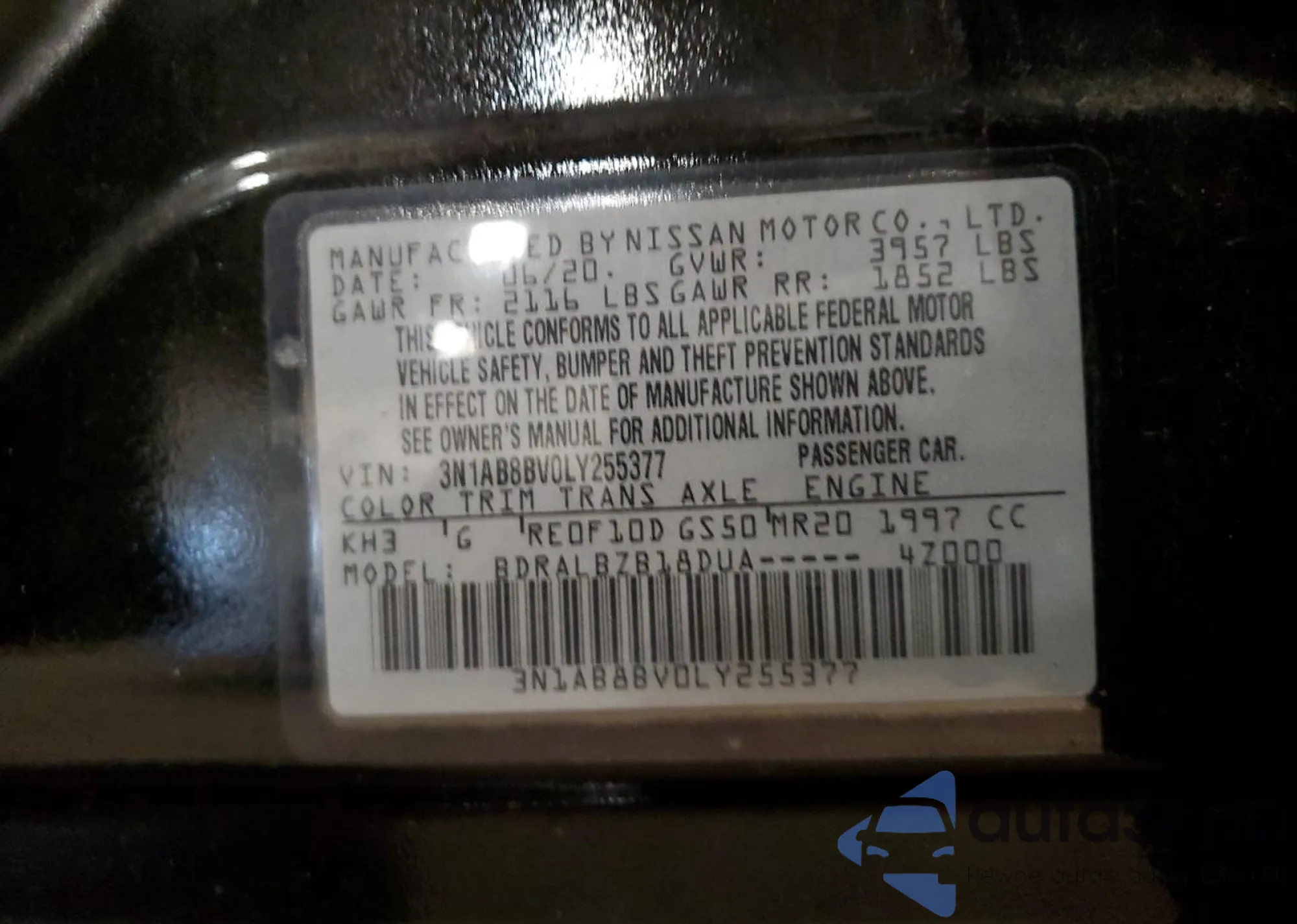 • VIN 3N1AB8BV0LY255377