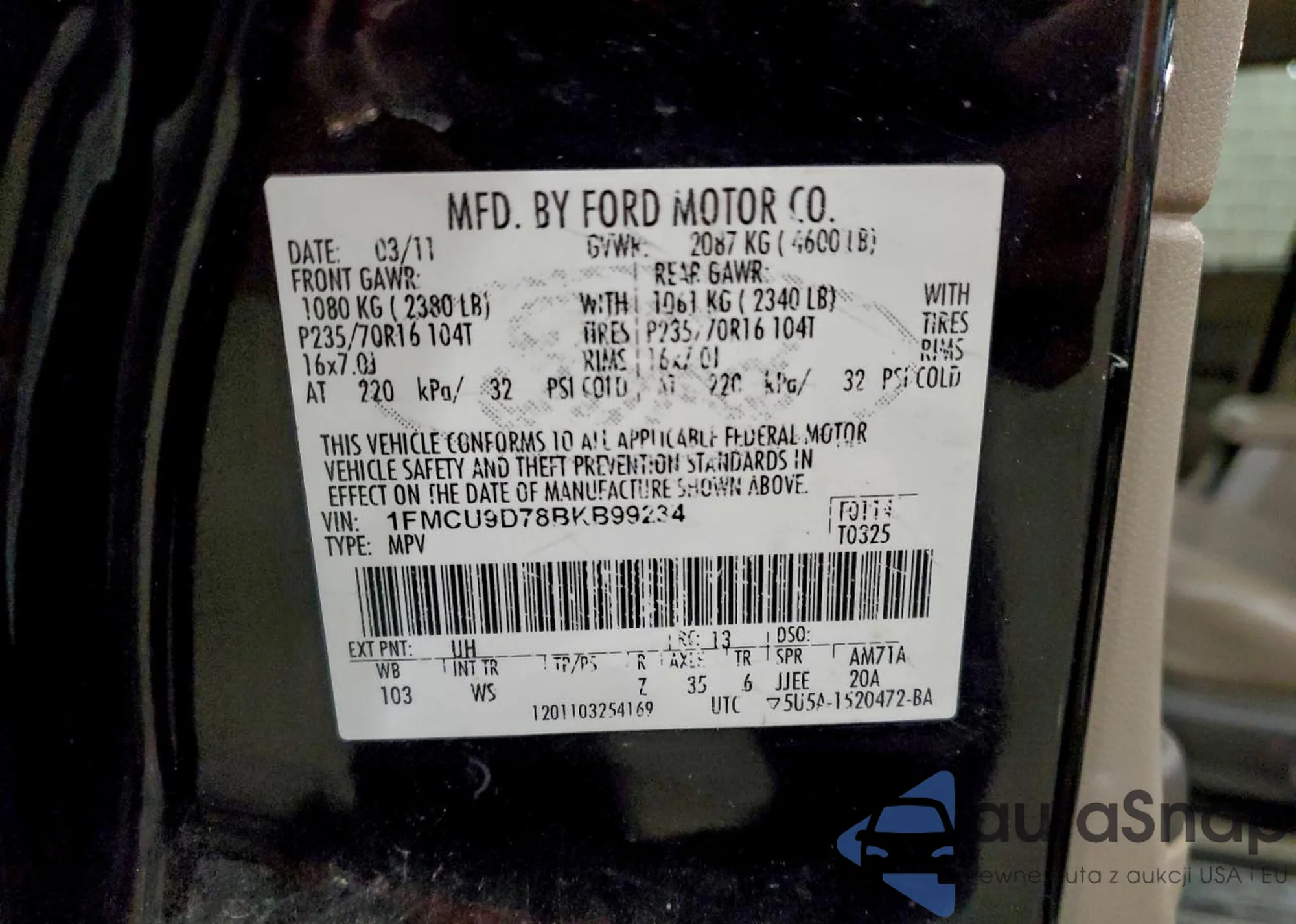 • VIN WBAFU7C59BC869824