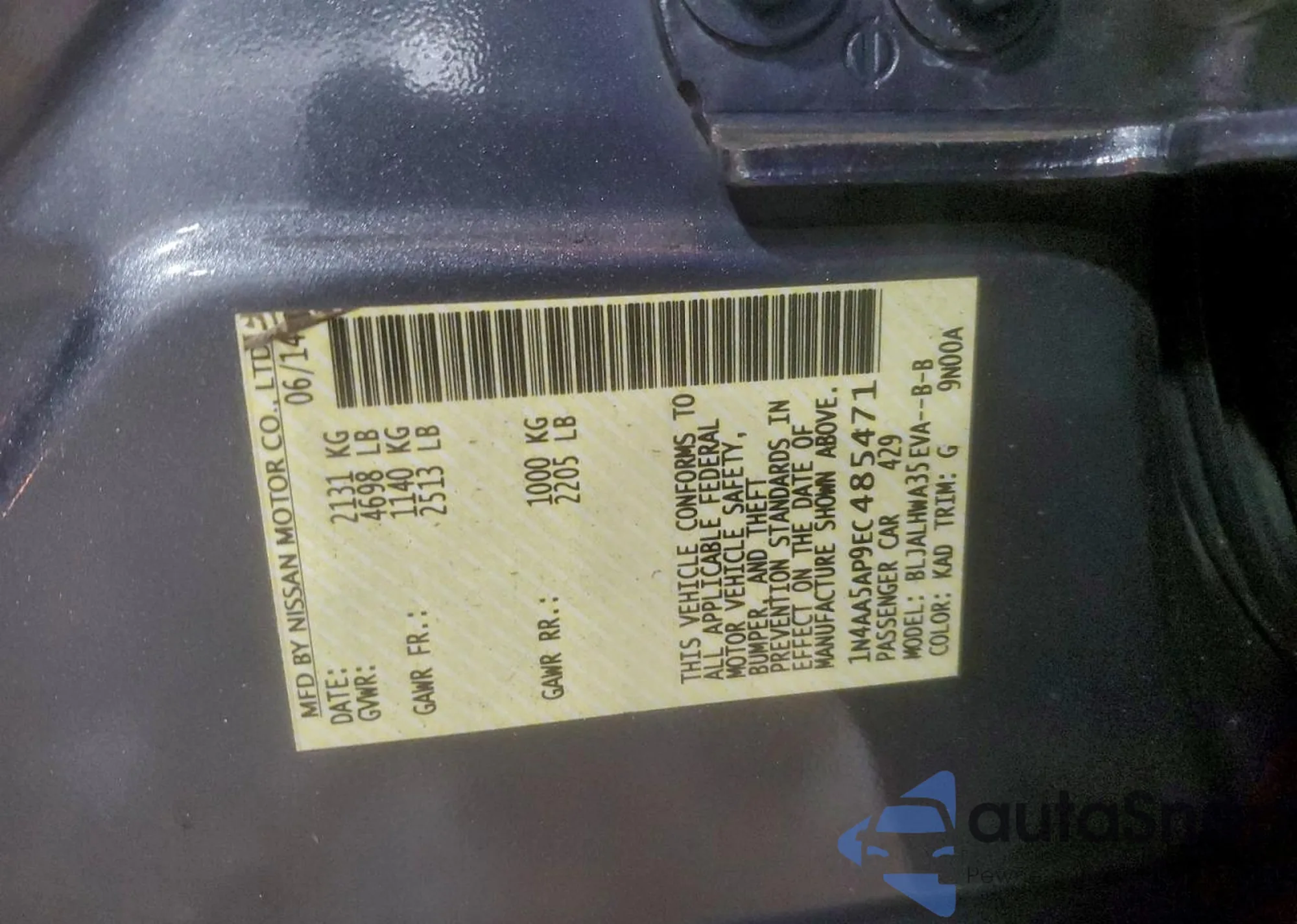 LOT: 96880455 VIN: 1N4AL2AP0BN402521