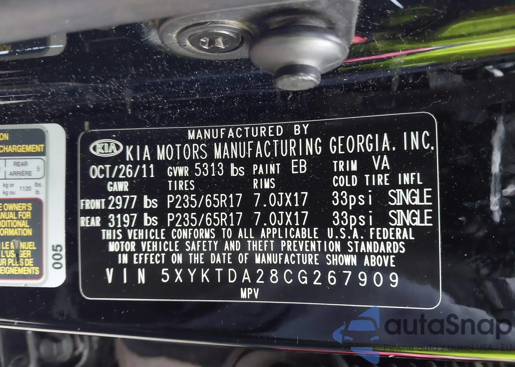 • VIN 5XYKTDA28CG267909
