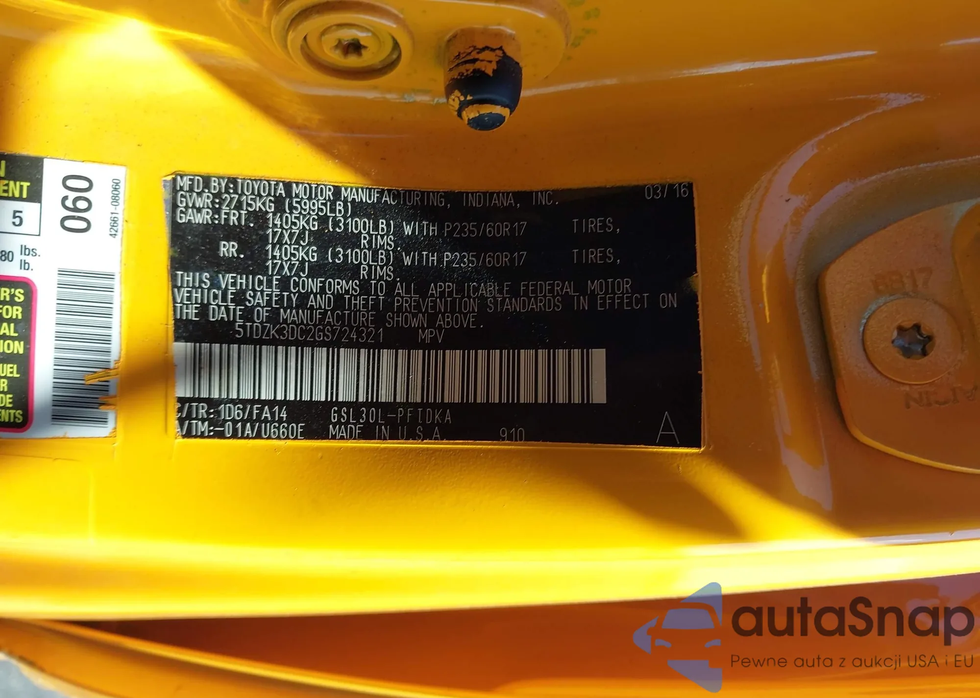 LOT: 43773404 VIN: 5TDZK3DC2GS724321