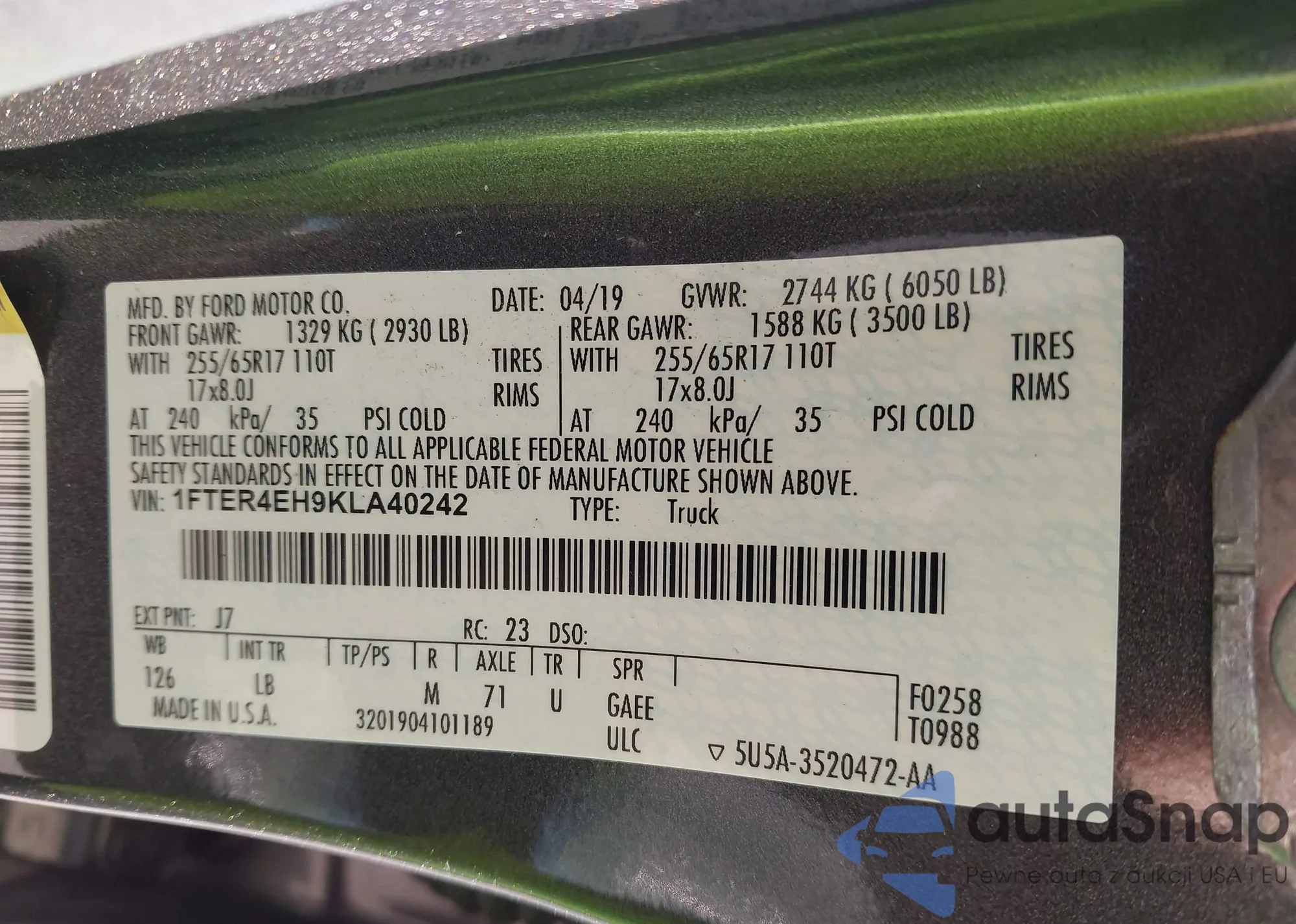 LOT: 43991080 VIN: 1FT7X2A63LED98711