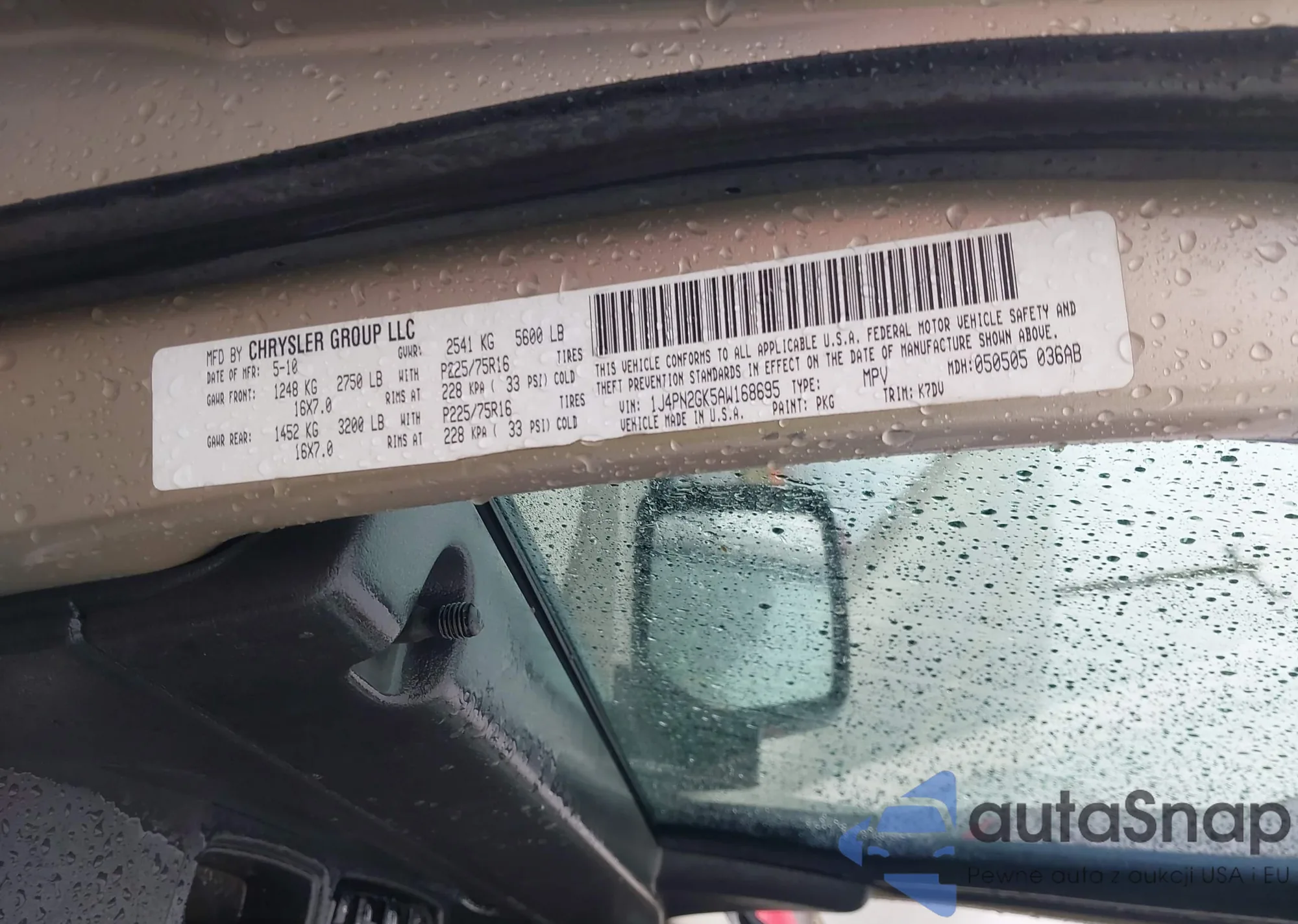 2010 Jeep Liberty Sport from USA, damaged, VIN 1J4PN2GK5AW168695