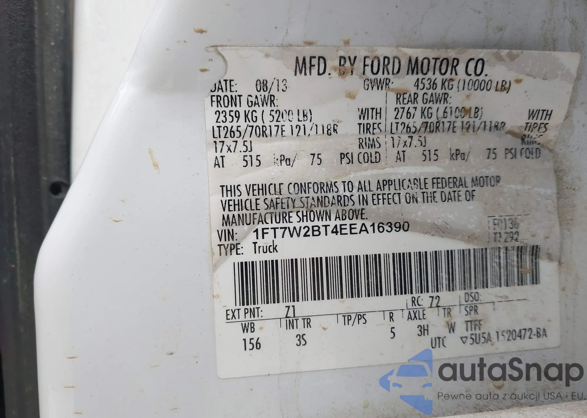 LOT: 43508506 VIN: 1FT7W2BT4EEA16390