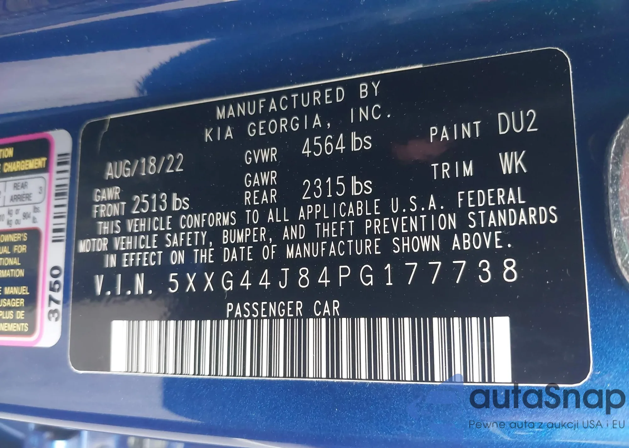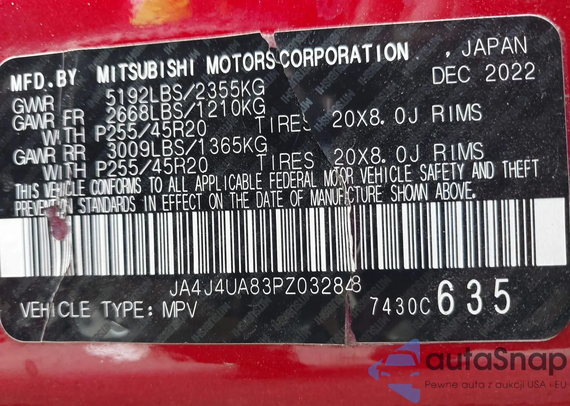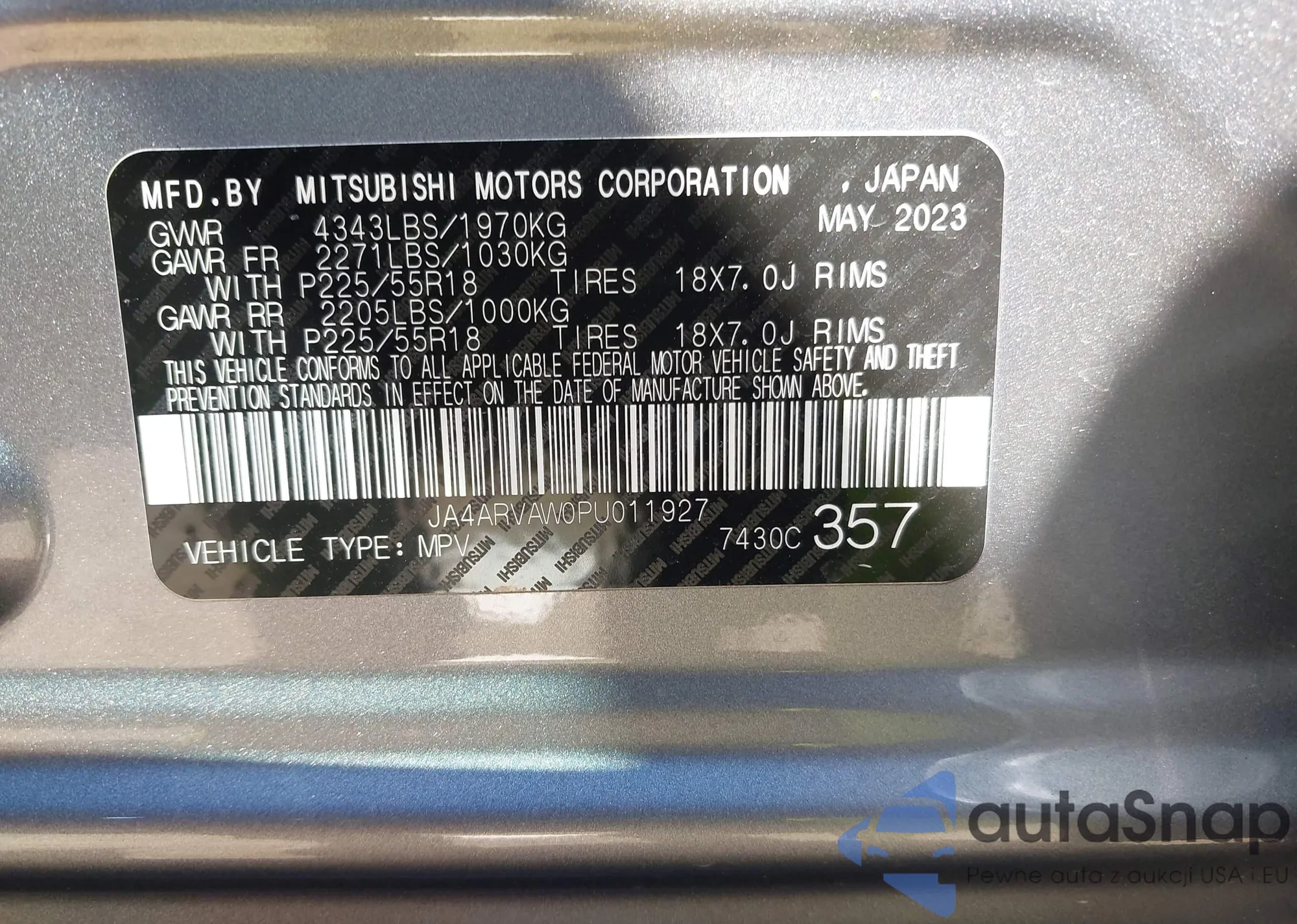 LOT: 43137548 VIN: JA4ARVAW0PU011927