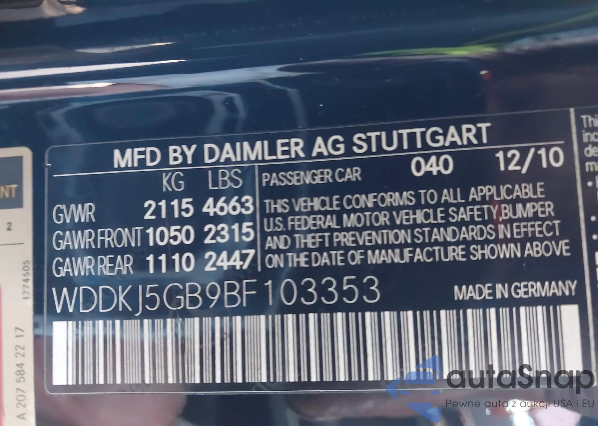 • VIN WDDKJ5GB9BF103353