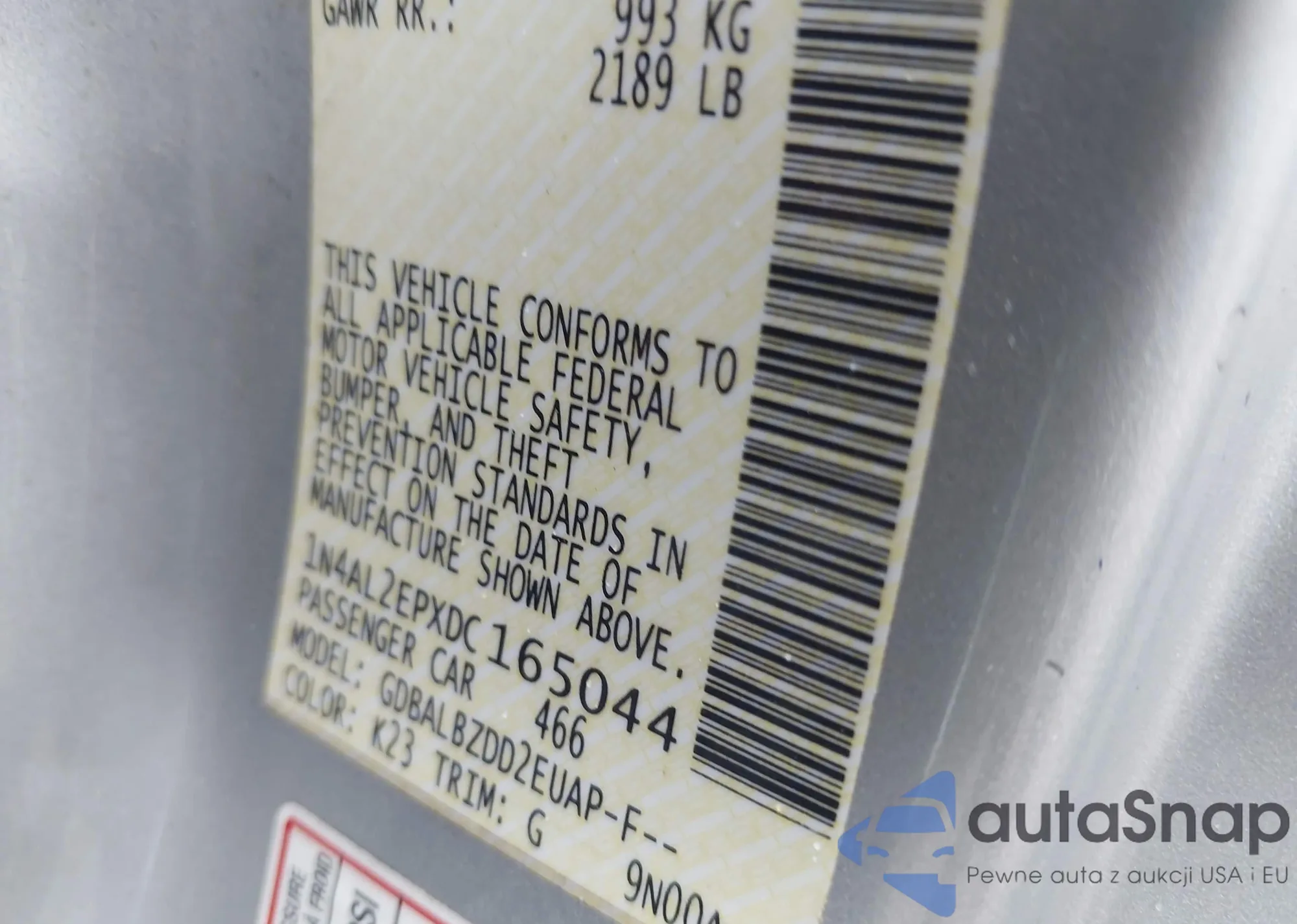 LOT: 43966383 VIN: 1N4AL2EPXDC165044