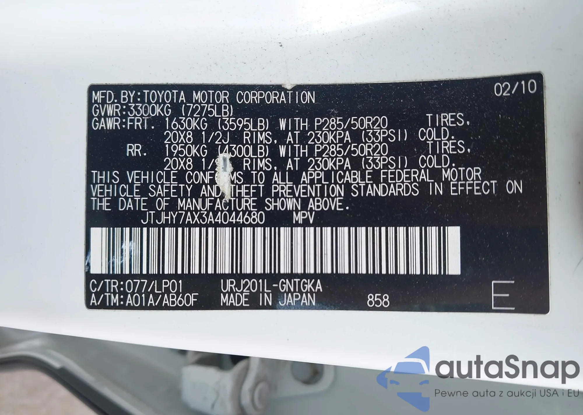 LOT: 43121583 VIN: JTJHY7AX3A4044680