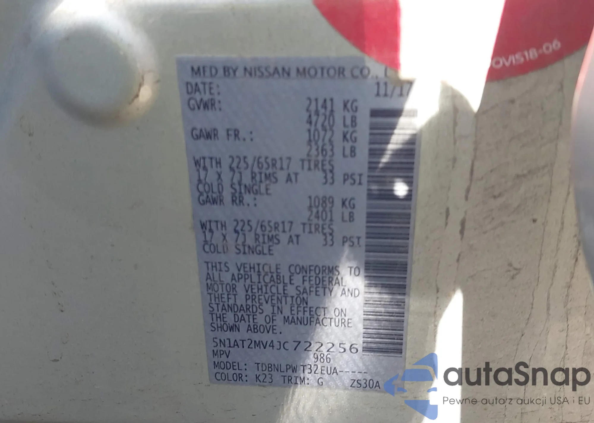 LOT: 43723704 VIN: JN1EV7EK4HM364133