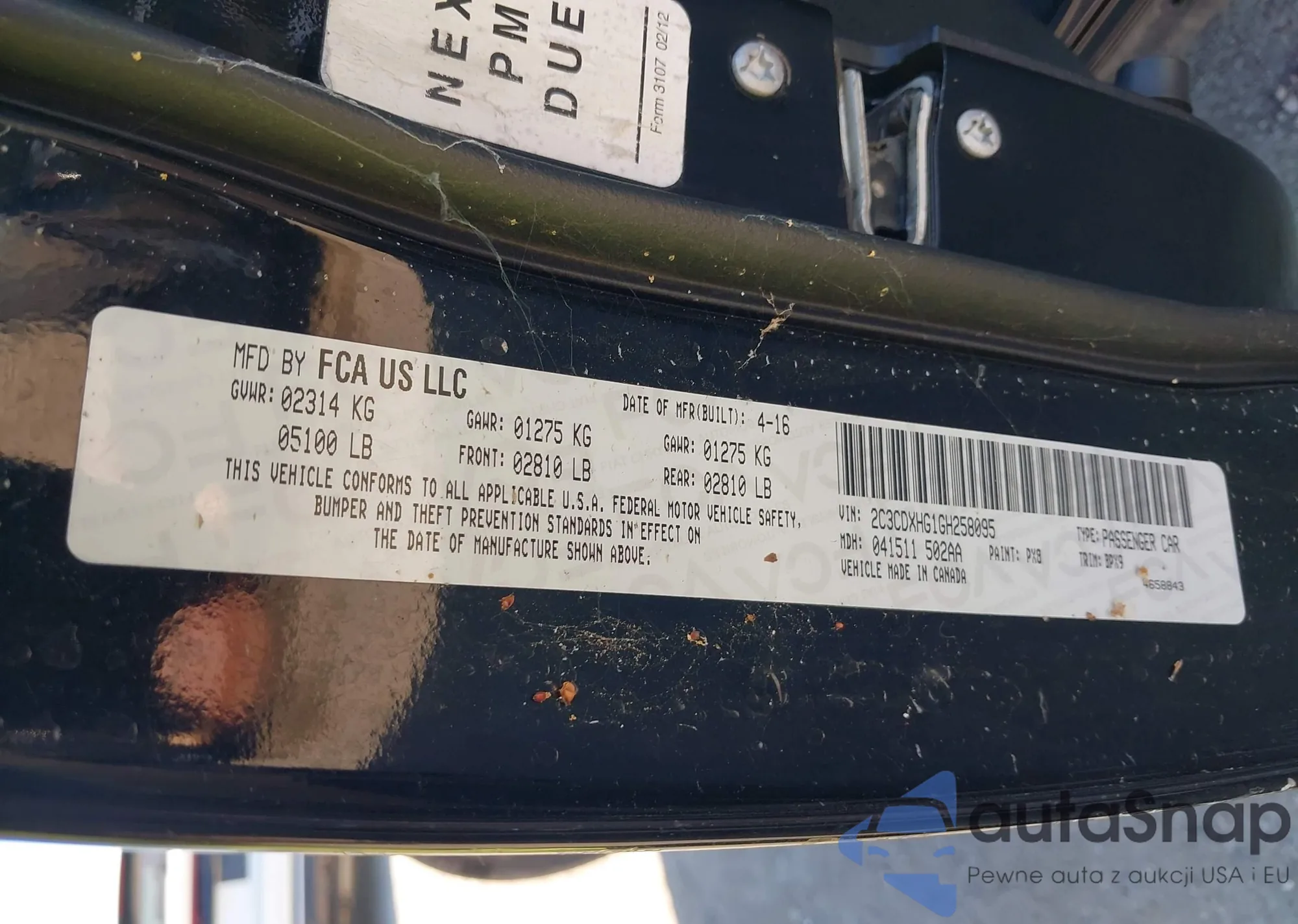• VIN 2C3CDXHG1GH258095