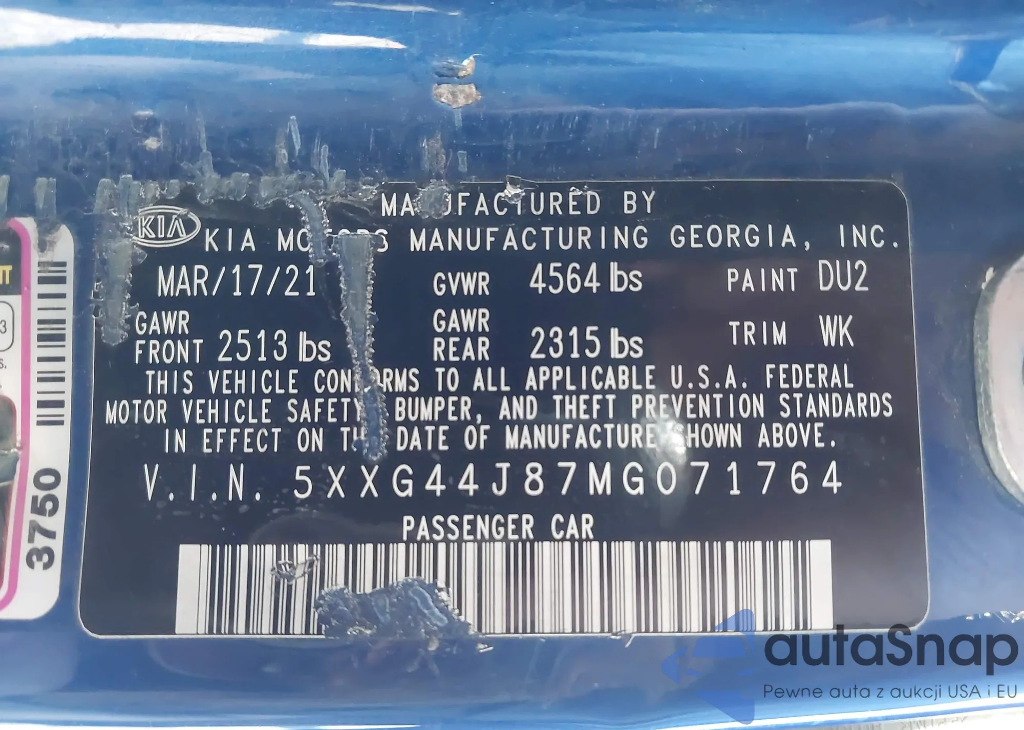 • VIN 5XXG44J87MG071764