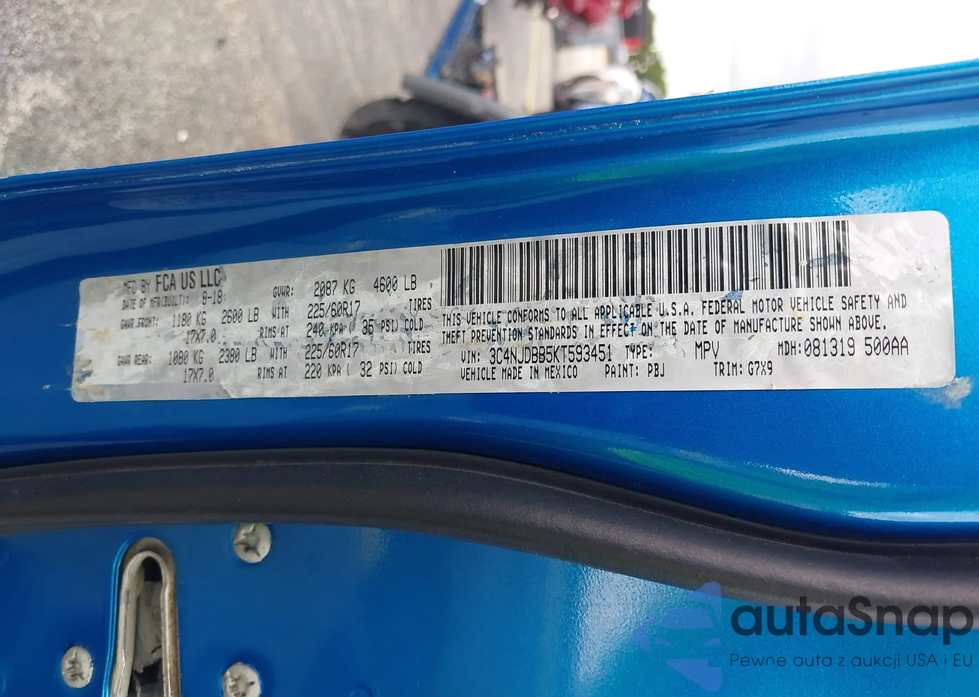 • VIN 3C4NJDBB5KT593451