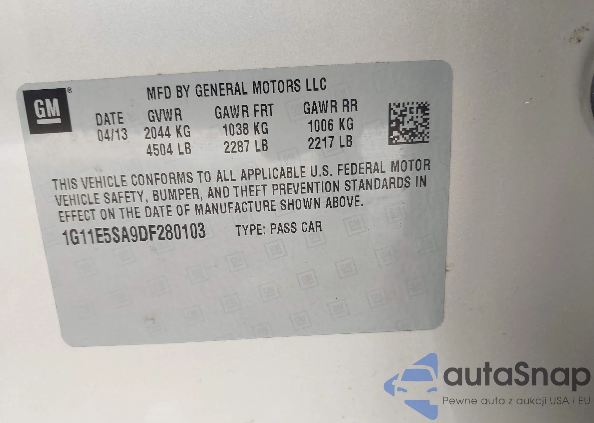 • VIN KL79MMSP8SB106973