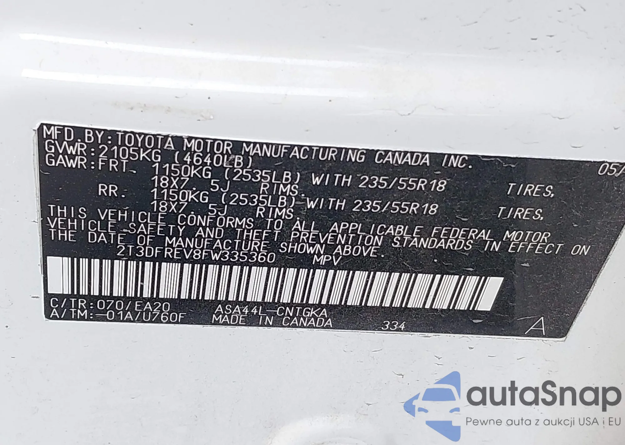 • VIN 2T3DFREV8FW335360