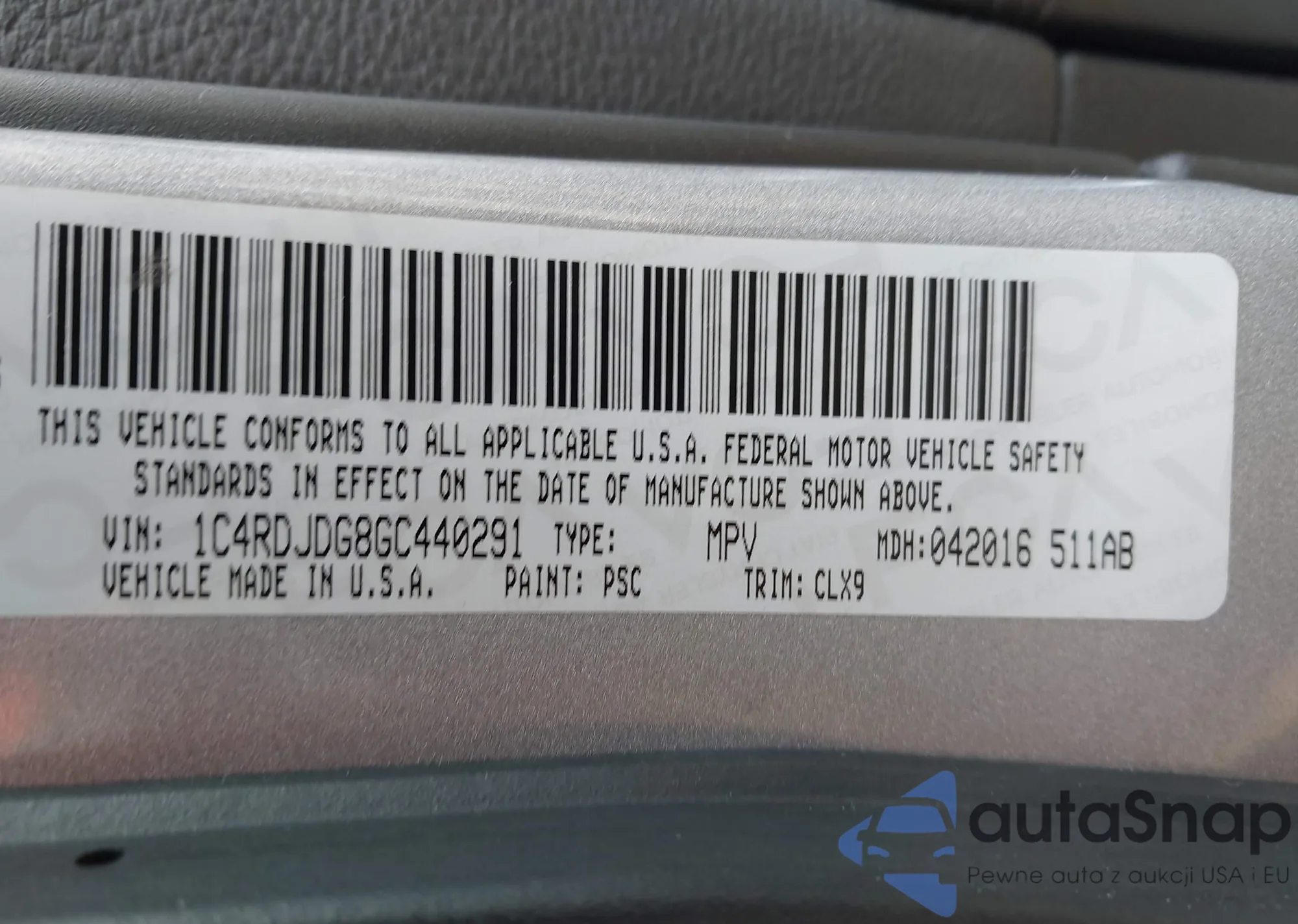 • VIN 1C4RDJDG8GC440291